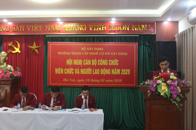 Sáng ngày 18/02/2020, Trường Trung cấp nghề Cơ khí xây dựng đã long trọng tổ chức Hội nghị cán bộ công chức, viên chức và người lao động năm 2020. Hội nghị có ý nghĩa quan trọng, nhằm đánh giá và tổng kết những kết quả đã đạt được trong năm 2019 và đề ra phương hướng nhiệm vụ 2020.