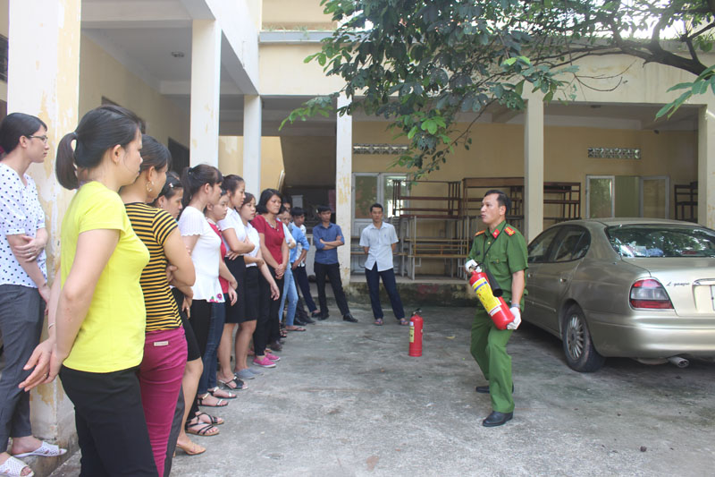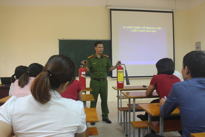 Tham gia lớp tập huấn có các cán bộ, giáo viên, học sinh trong trường, do đồng chí Trung tá Trần Văn Đồng - cán bộ của Phòng Cảnh sát PCCC số 11, Thành phố Hà Nội hướng dẫn.