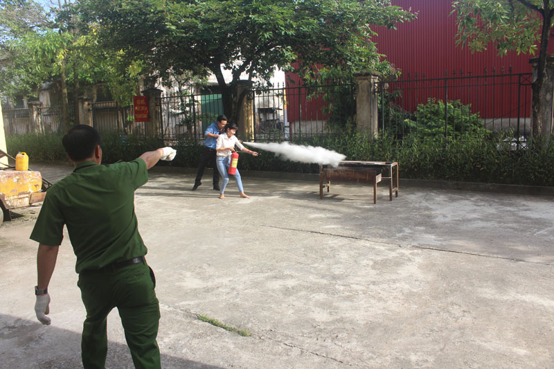 Sau buổi học lý thuyết, dưới sự giúp đỡ của giảng viên và sự phối hợp của Phòng Cảnh sát PCCC số 11, Thành phố Hà Nội, các học viên trong Đội PCCC Nhà trường đã được thực hành cách sử dụng các phương tiện bình bột, bình CO2 để dập tắt đám cháy và cách thức xử lý nhanh các tình huống có thể xảy ra.