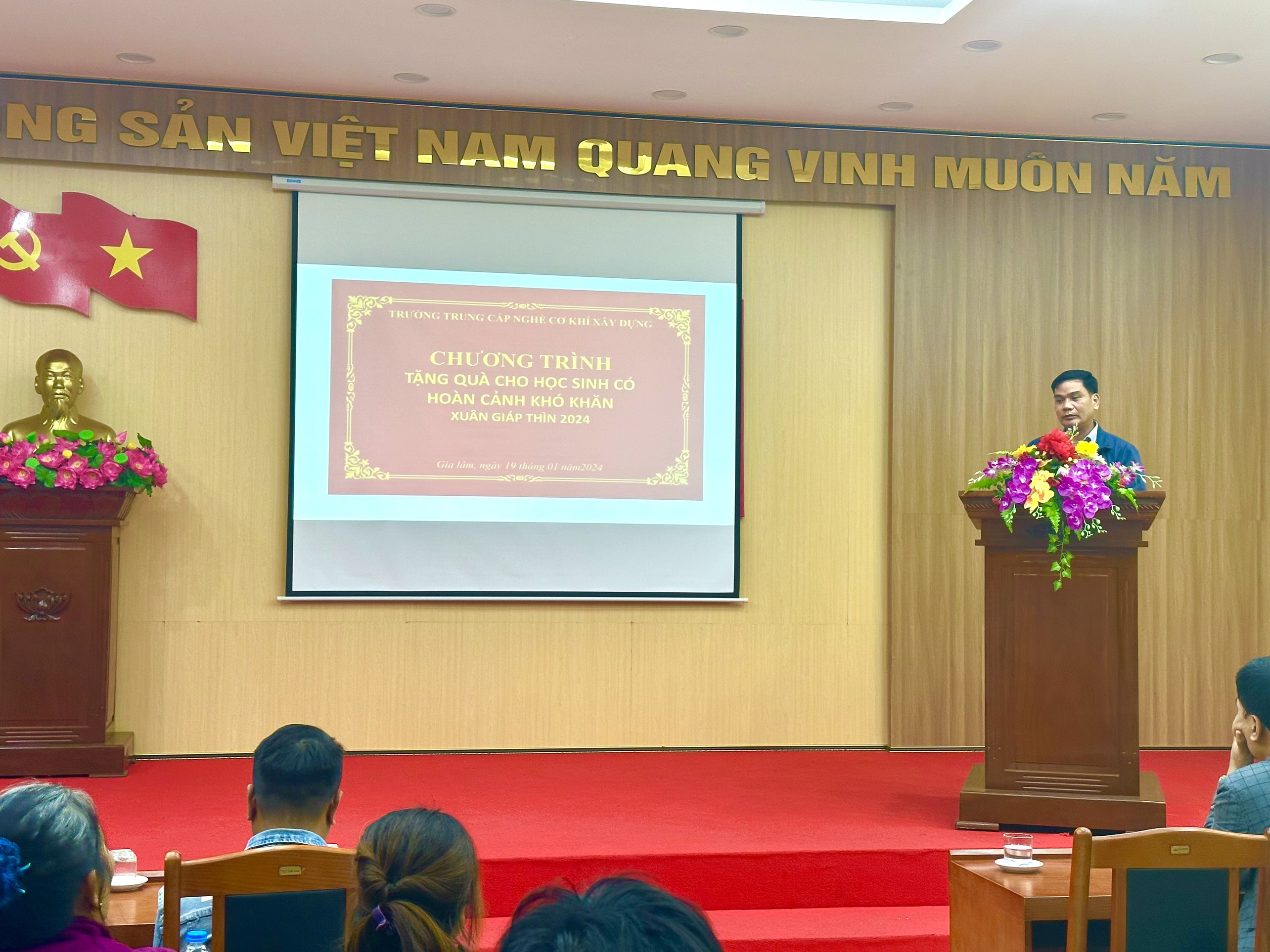 Ngày 19/01/2024, Trường Trung cấp nghề Cơ khí xây dựng, tổ chức chương trình “Tặng quà cho học sinh có hoàn cảnh khó khăn nhân dịp Xuân Giáp Thìn 2024”