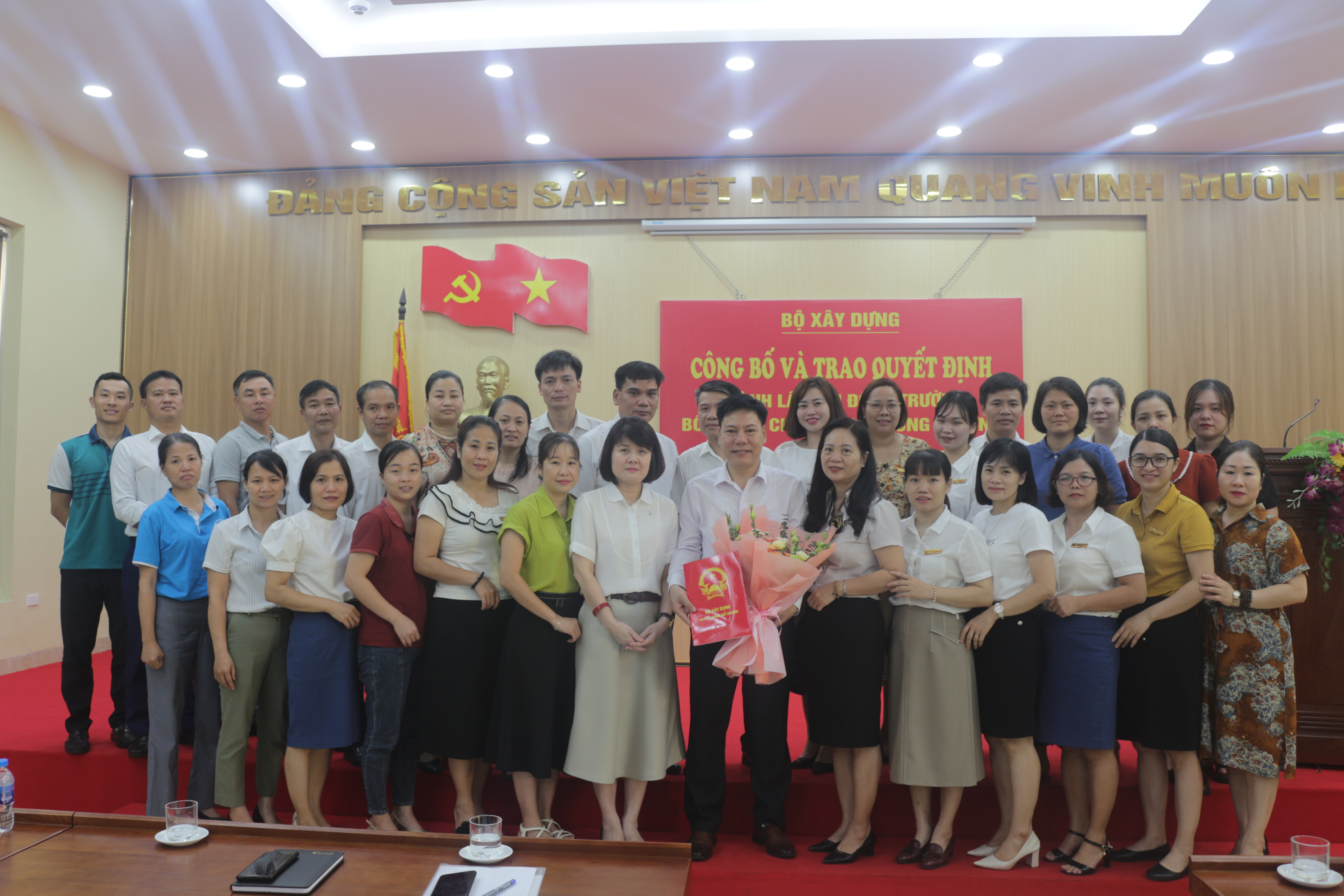 Thừa ủy quyền của lãnh đạo Vụ Tổ chức cán bộ, đồng chí Đào Văn Tiên - Trưởng phòng Tổng hợp đã công bố các Quyết định của Bộ trưởng Bộ Xây dựng về việc thành lập Hội đồng trường; bổ nhiệm ông Nguyễn Đình Nhâm, Trưởng phòng Kế hoạch - Đào tạo giữ chức vụ Chủ tịch Hội đồng trường Trường Trung cấp nghề Cơ khí xây dựng nhiệm kỳ 2023 - 2028.
