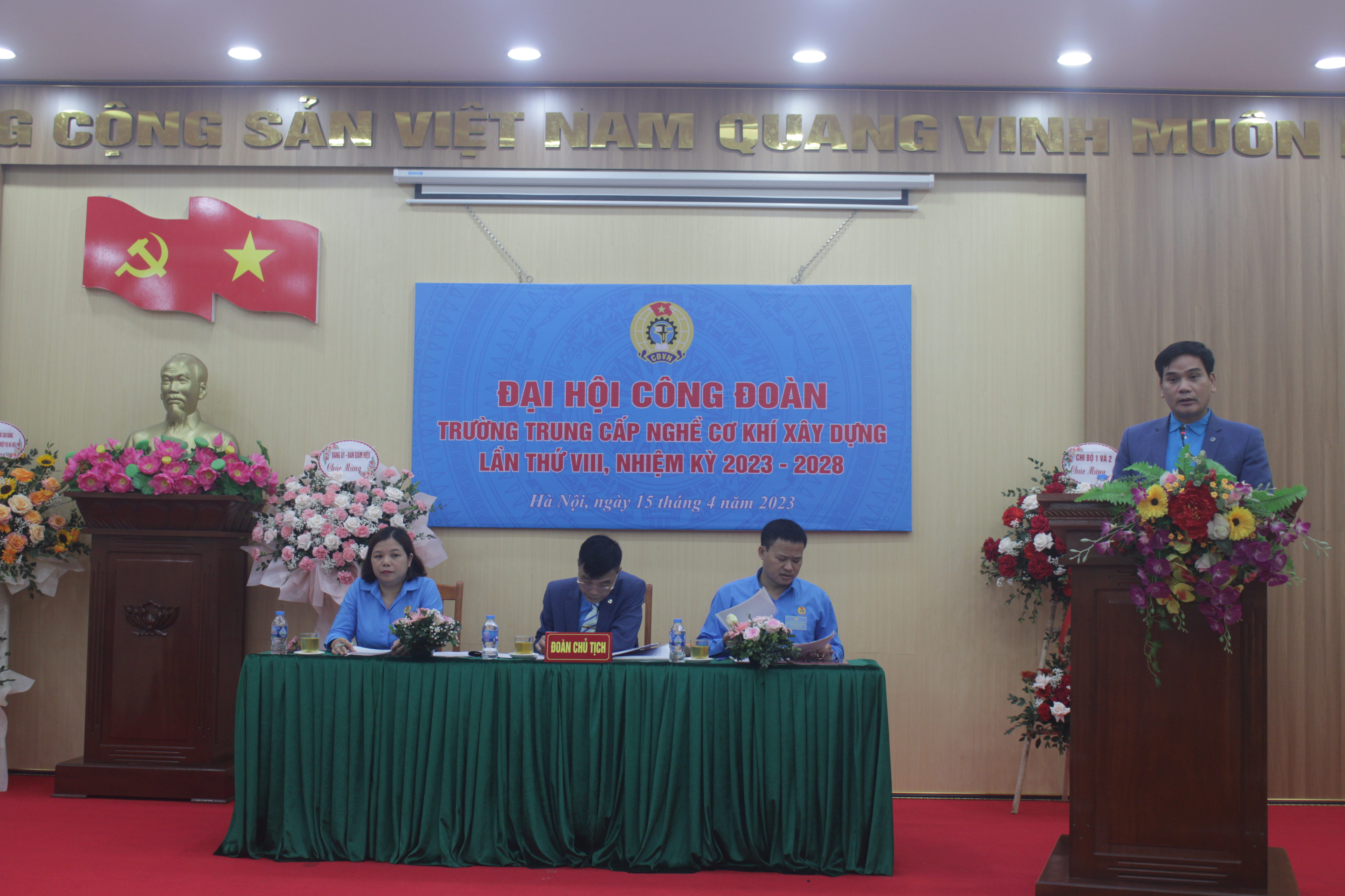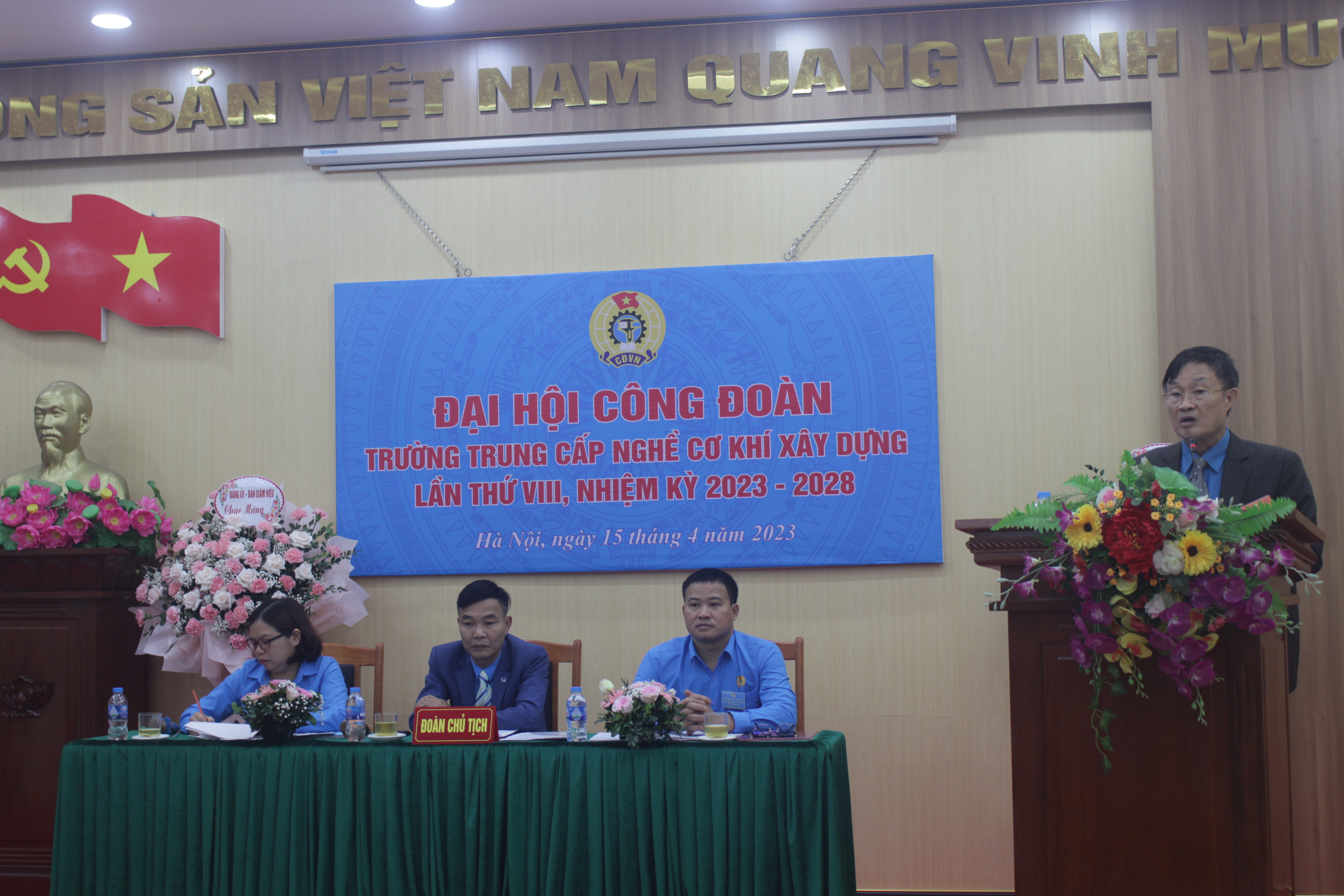Phát biểu chỉ đạo tại Đại hội, đồng chí Vũ Ngọc Chính - Phó Chủ tịch Công đoàn Xây dựng Việt Nam nhất trí với phương hướng và nhiệm vụ của Công đoàn Trường Trung cấp nghề Cơ khí xây dựng trong nhiệm kỳ 2023 - 2028. Đồng chí bày tỏ tin tưởng với sự lãnh đạo đúng đắn của Đảng ủy, sự phối hợp có hiệu quả của Ban giám hiệu, cùng sự đoàn kết, nỗ lực của các đoàn viên công đoàn, Ban Chấp hành công đoàn nhiệm kỳ 2023 - 2028 sẽ hoàn thành xuất sắc nhiệm vụ, phát huy sức mạnh tổng hợp, nâng cao hiệu quả hoạt động chung của nhà trường.