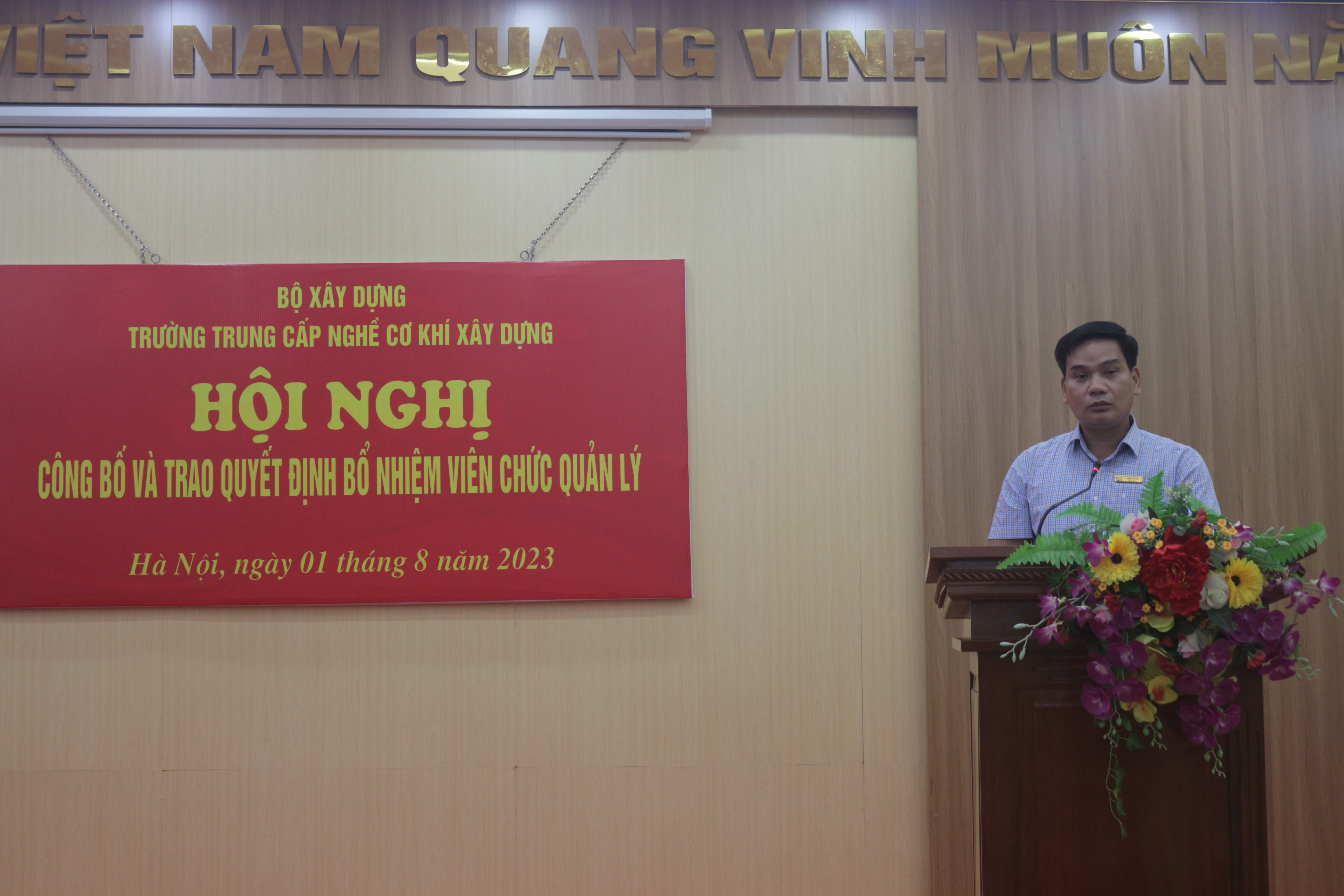 Sáng ngày 01/8/2023, Trường Trung cấp nghề Cơ khí xây dựng long trọng tổ chức Hội nghị công bố và trao Quyết định bổ nhiệm viên chức quản lý.