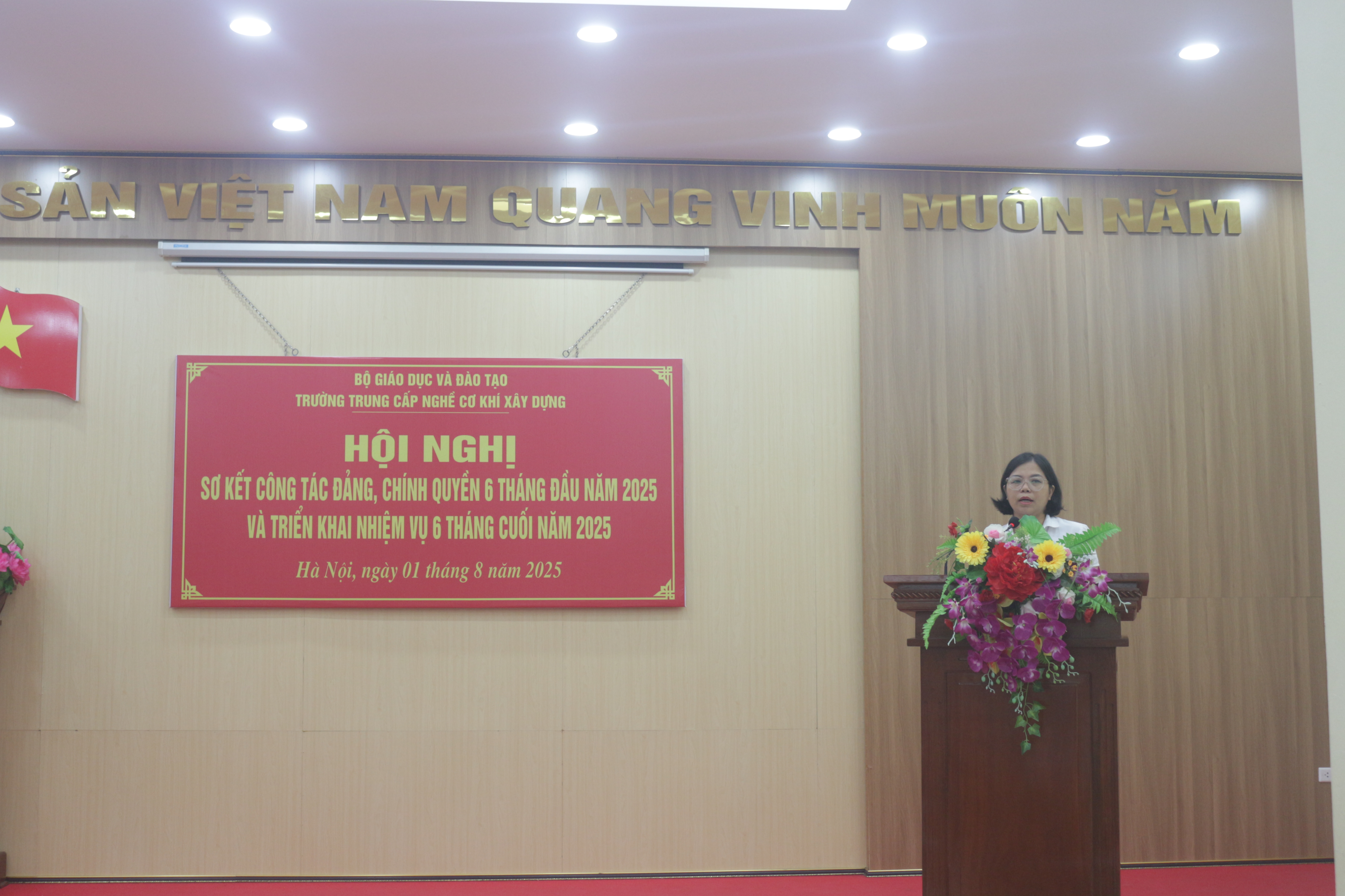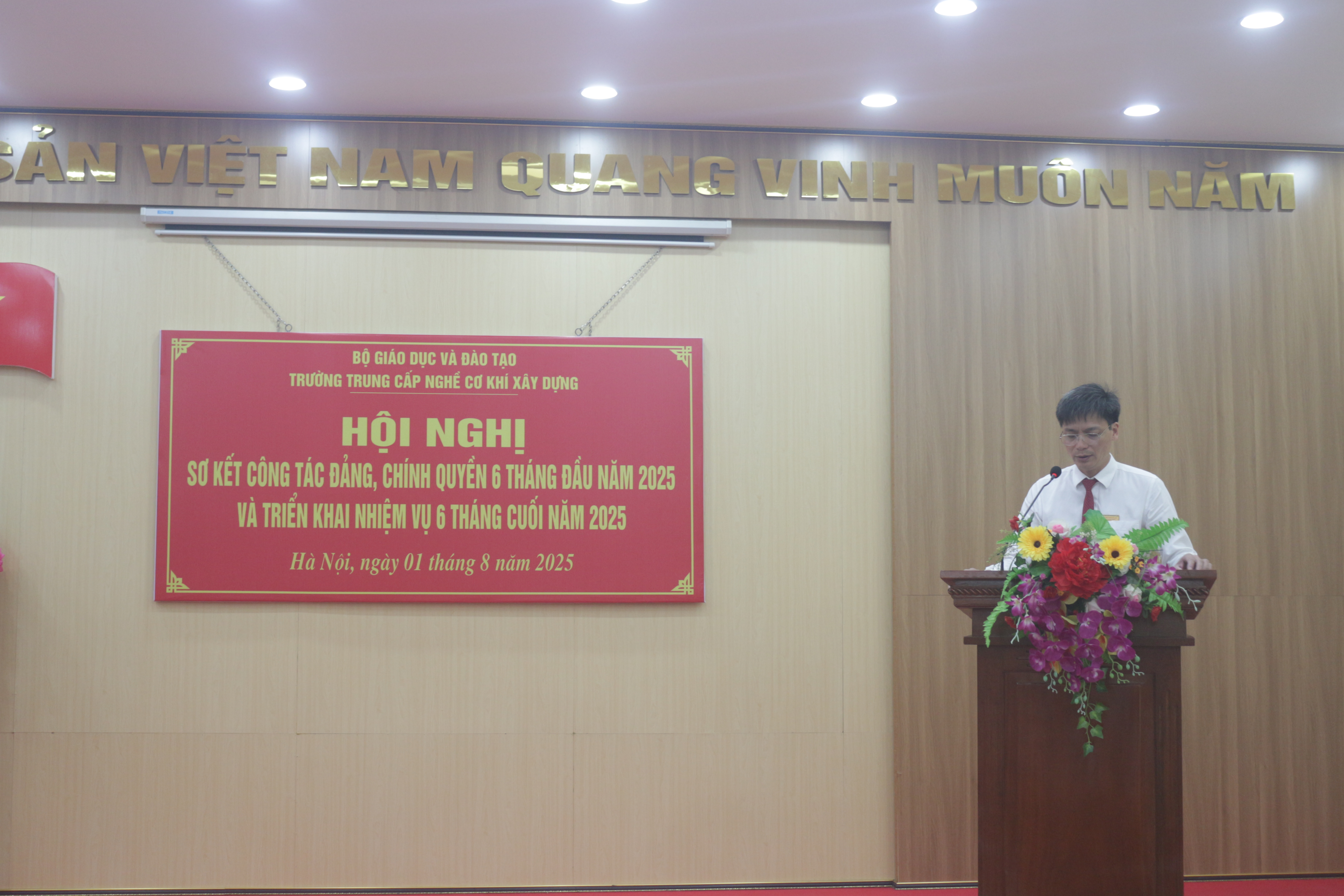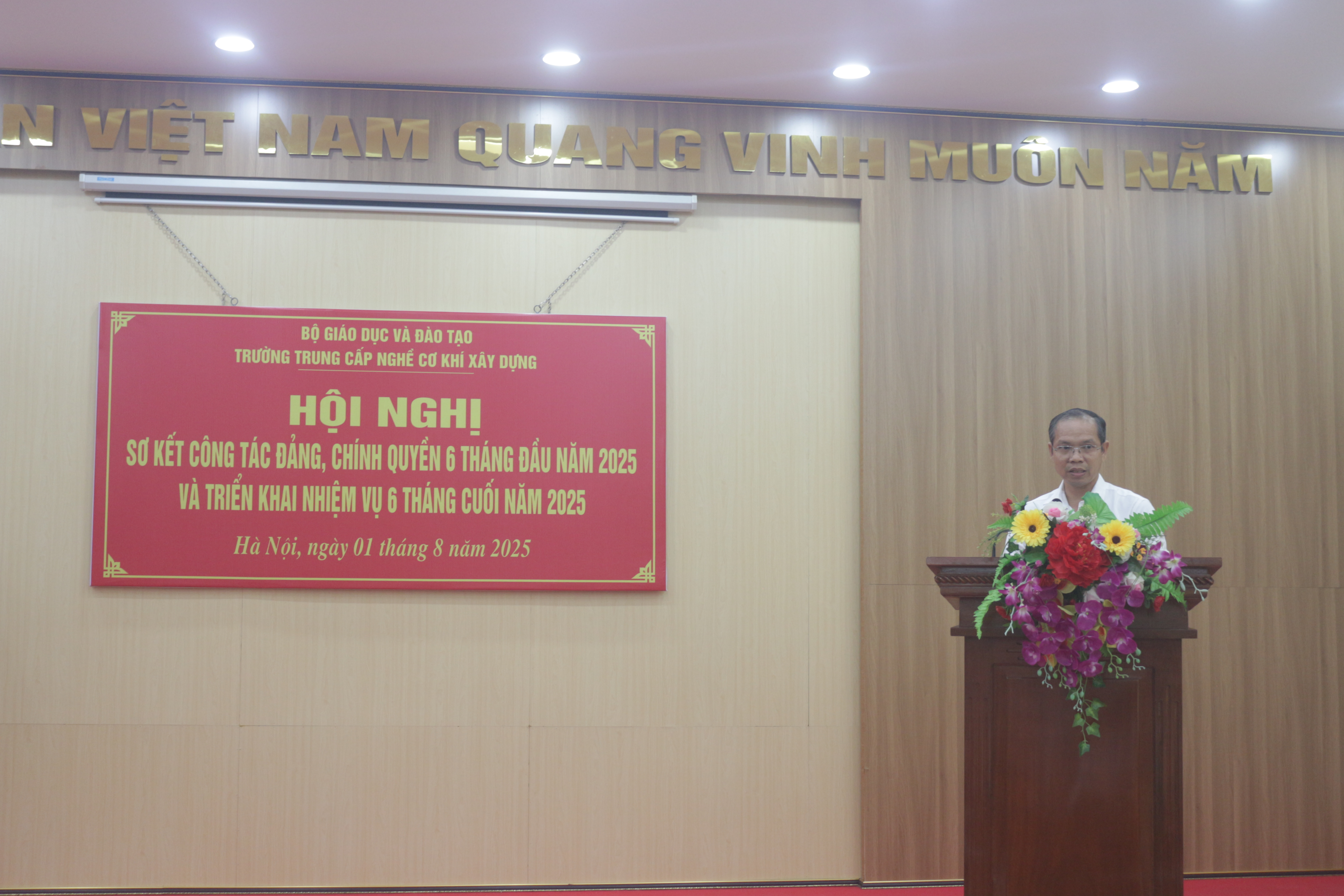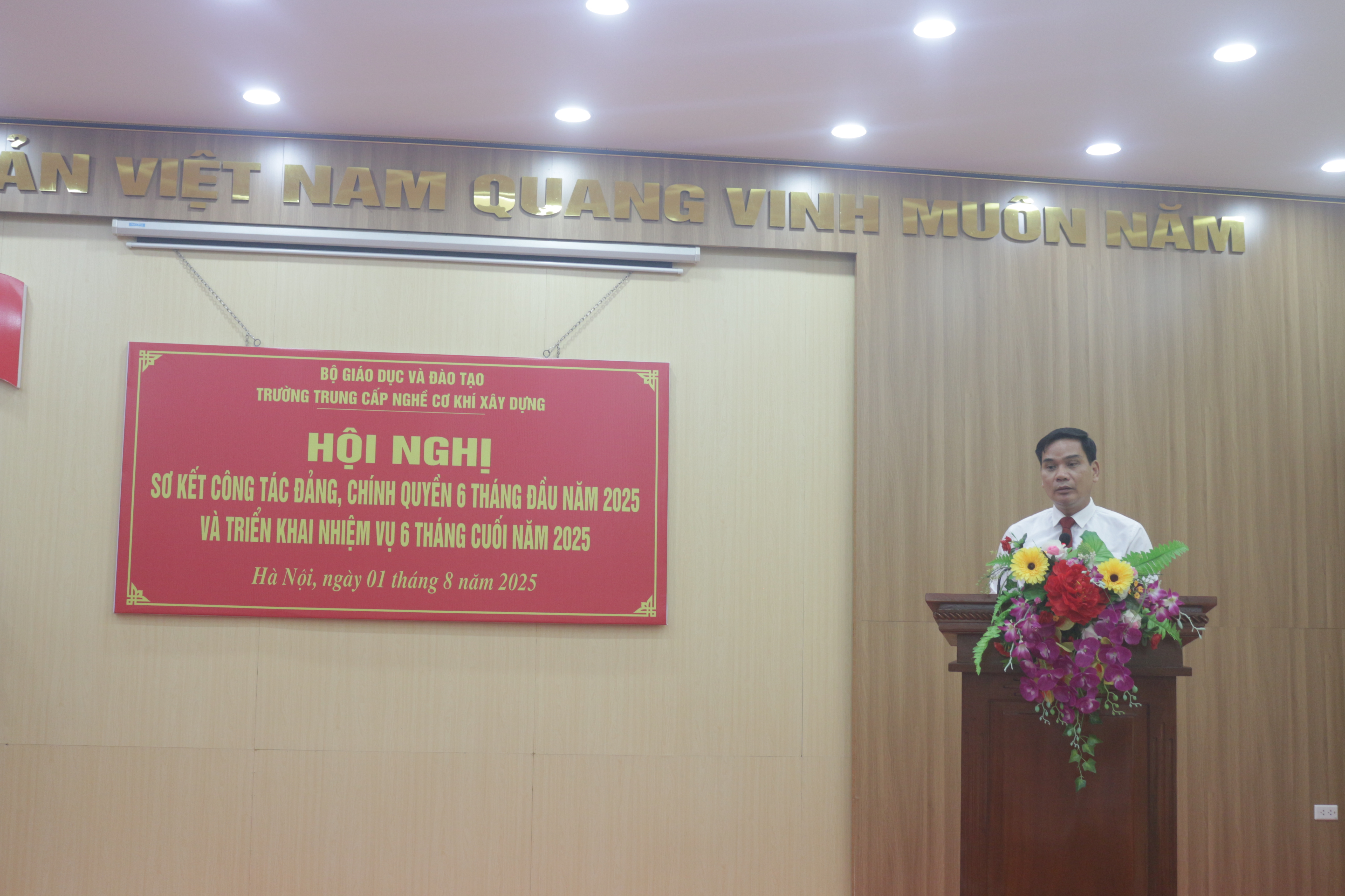 Ngày 01/8/2025, Trường Trung cấp nghề Cơ khí xây dựng đã tổ chức Hội nghị sơ kết công tác Đảng, chính quyền 6 tháng đầu năm 2025 và triển khai nhiệm vụ 6 tháng cuối năm 2025.