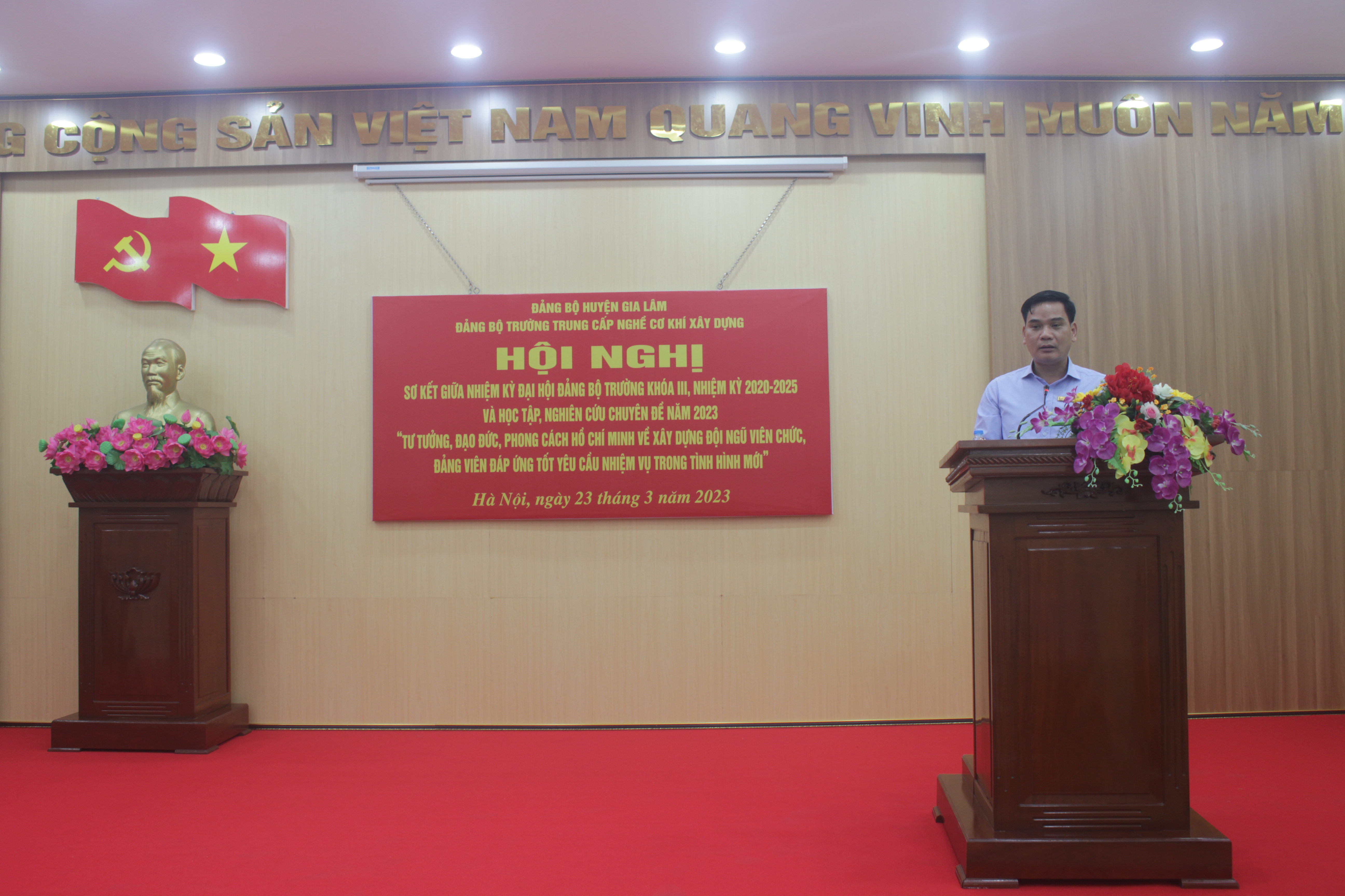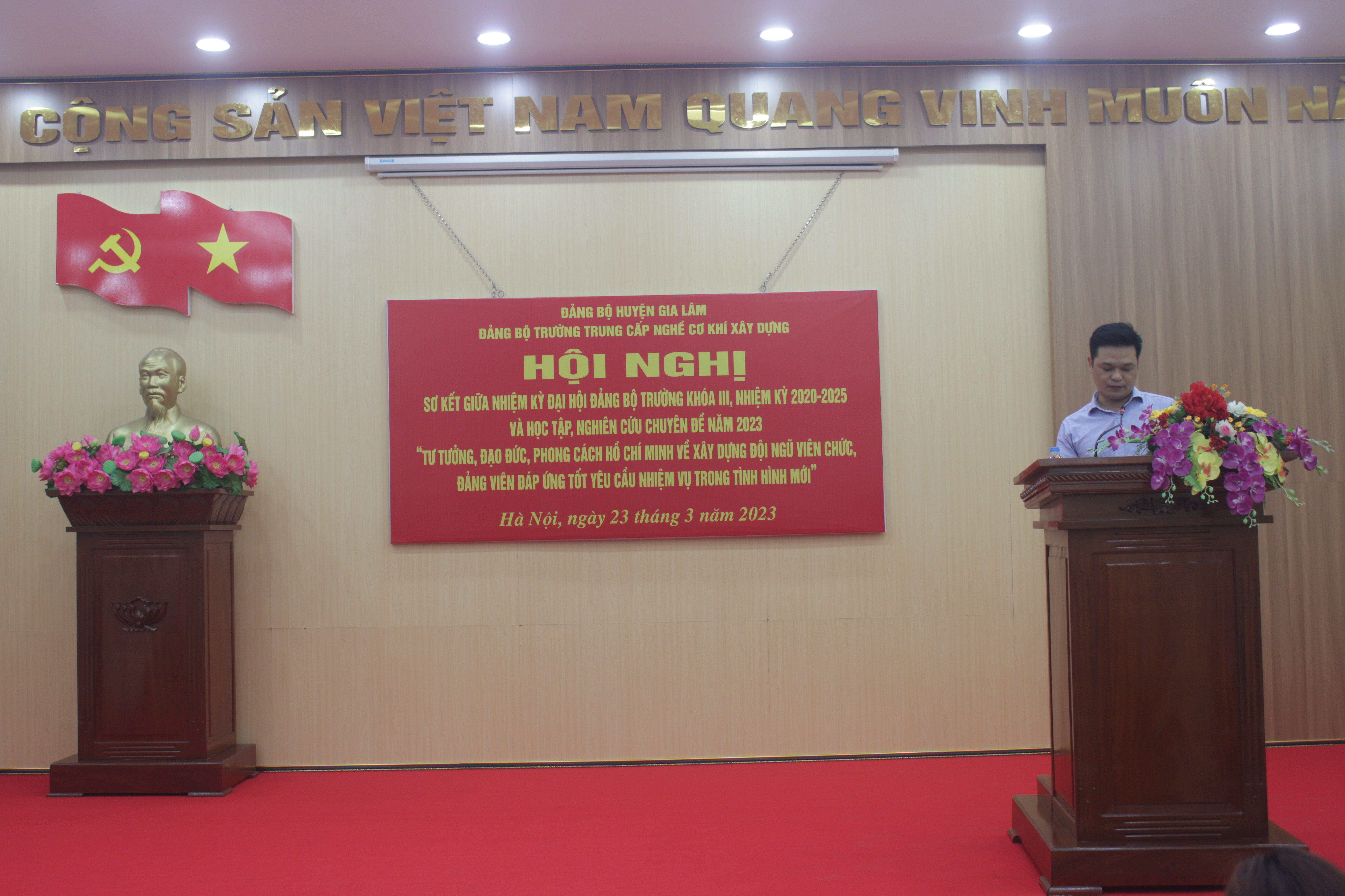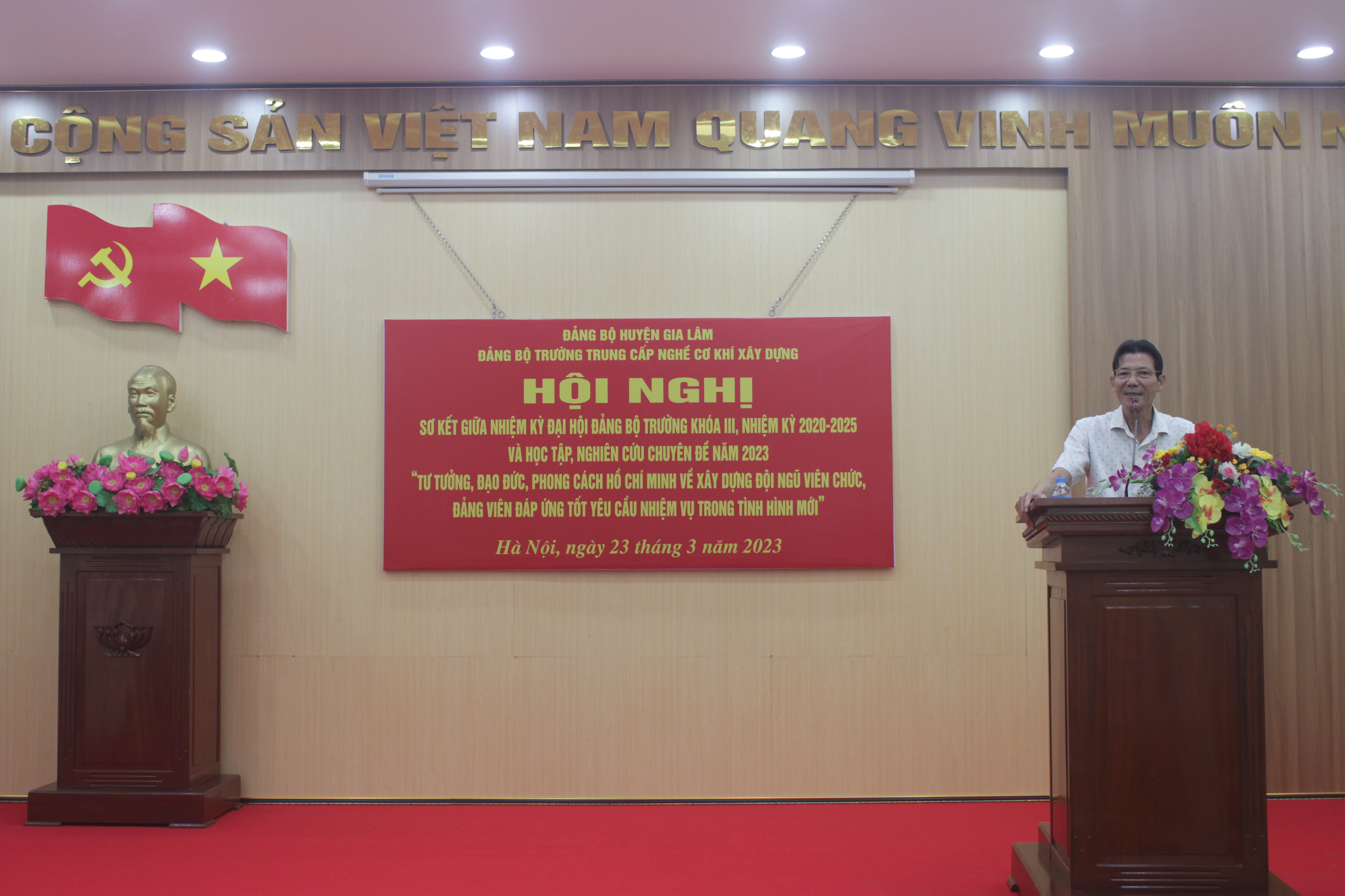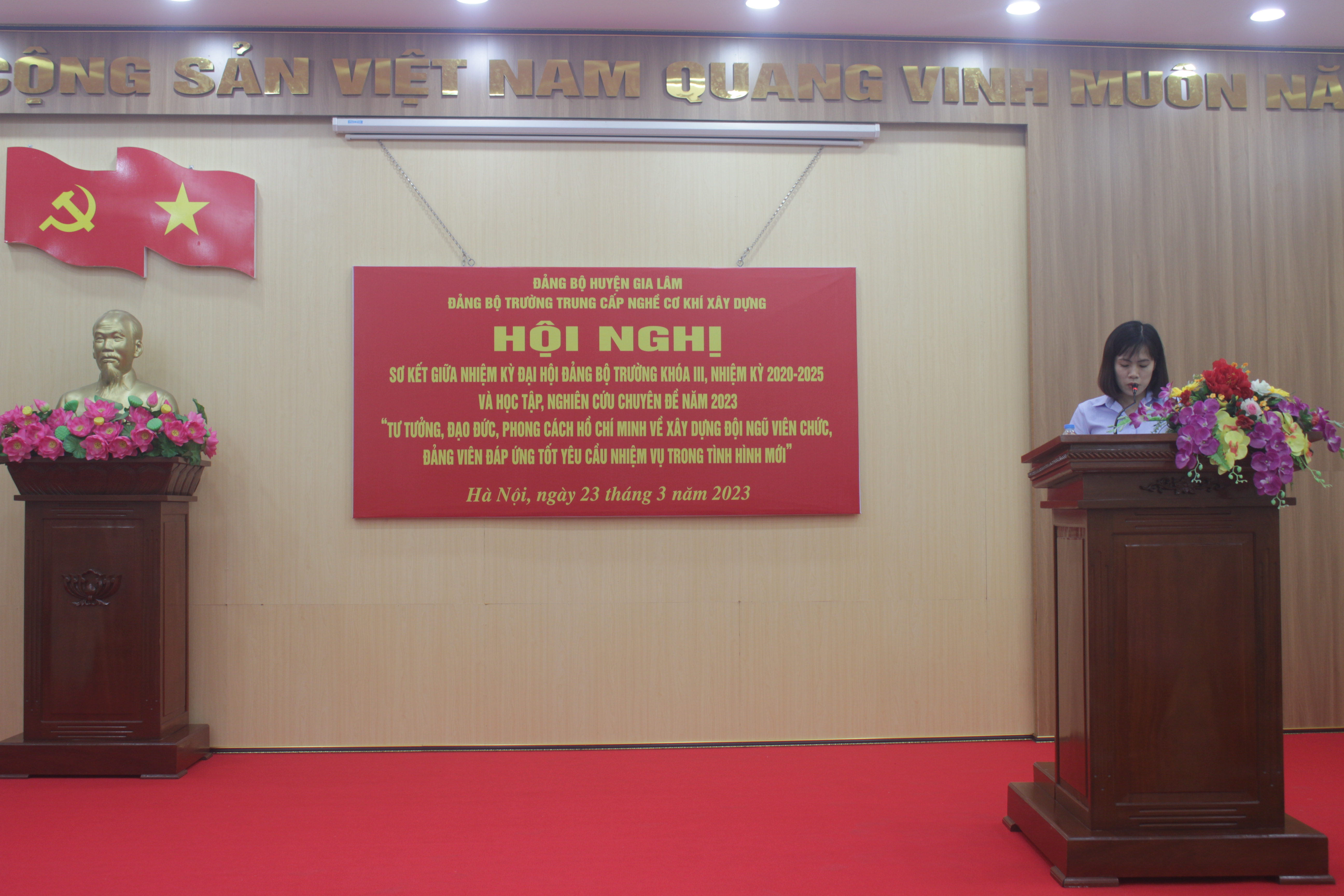 Ngày 23/3/2023, Đảng bộ Trường Trung cấp nghề Cơ khí xây dựng đã tổ chức Hội nghị sơ kết giữa nhiệm kỳ thực hiện Nghị quyết Đại hội Đảng bộ Trường khóa III, nhiệm kỳ 2020 - 2025 và học tập, nghiên cứu Chuyên đề năm 2023: "Học tập và làm theo tư tưởng, đạo đức, phong cách Hồ Chí Minh về xây dựng đội ngũ viên chức, đảng viên đáp ứng tốt yêu cầu nhiệm vụ trong tình hình mới".
