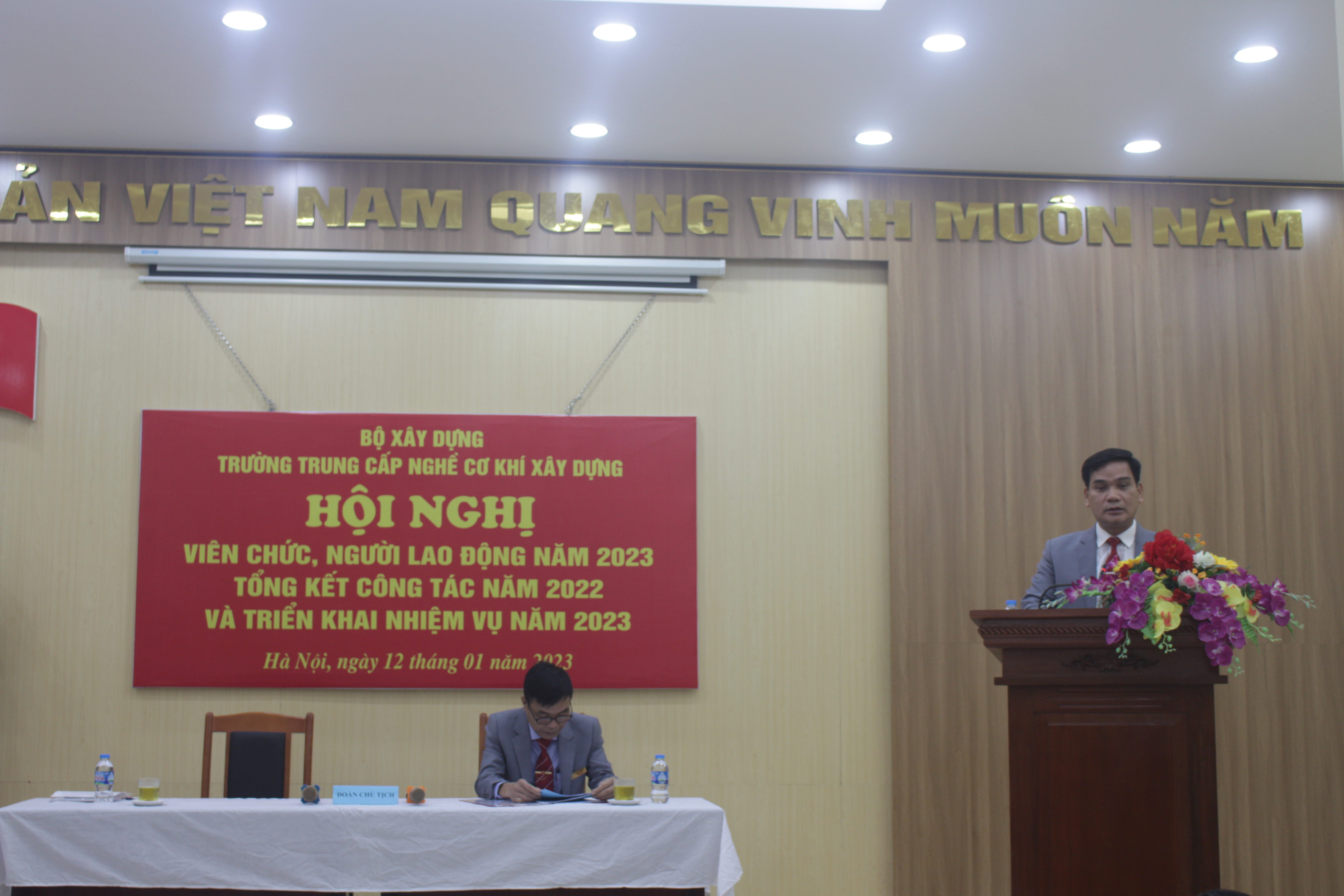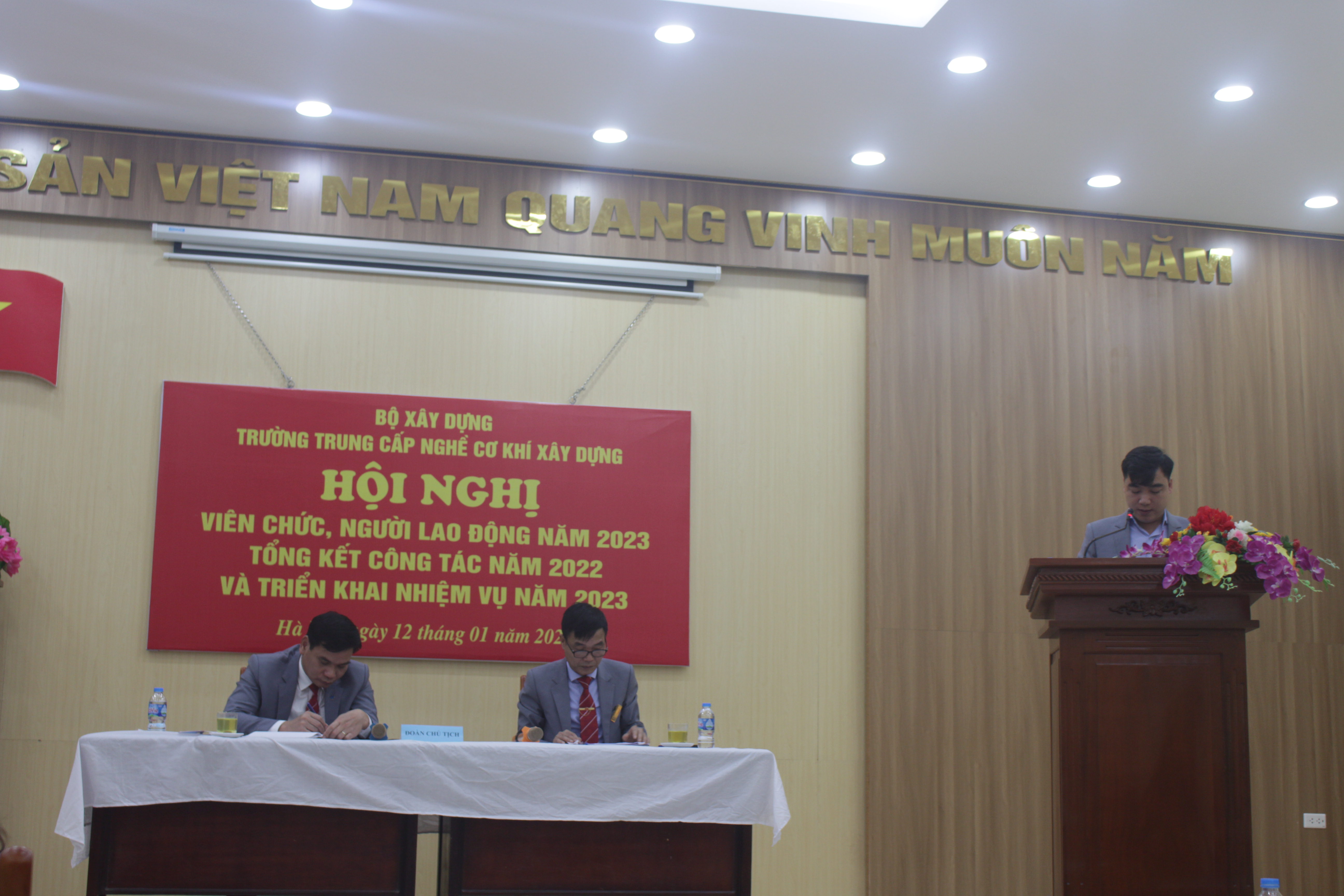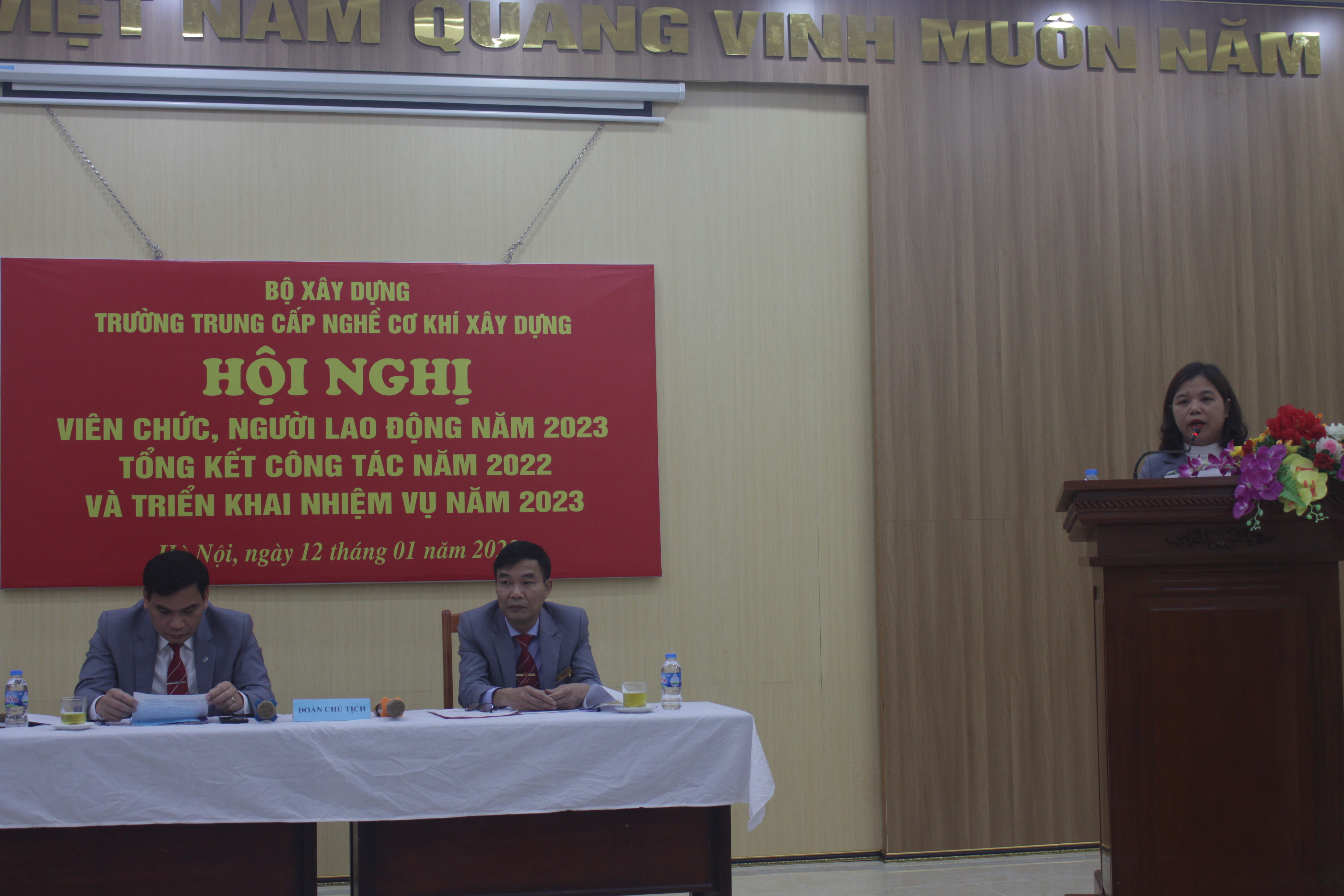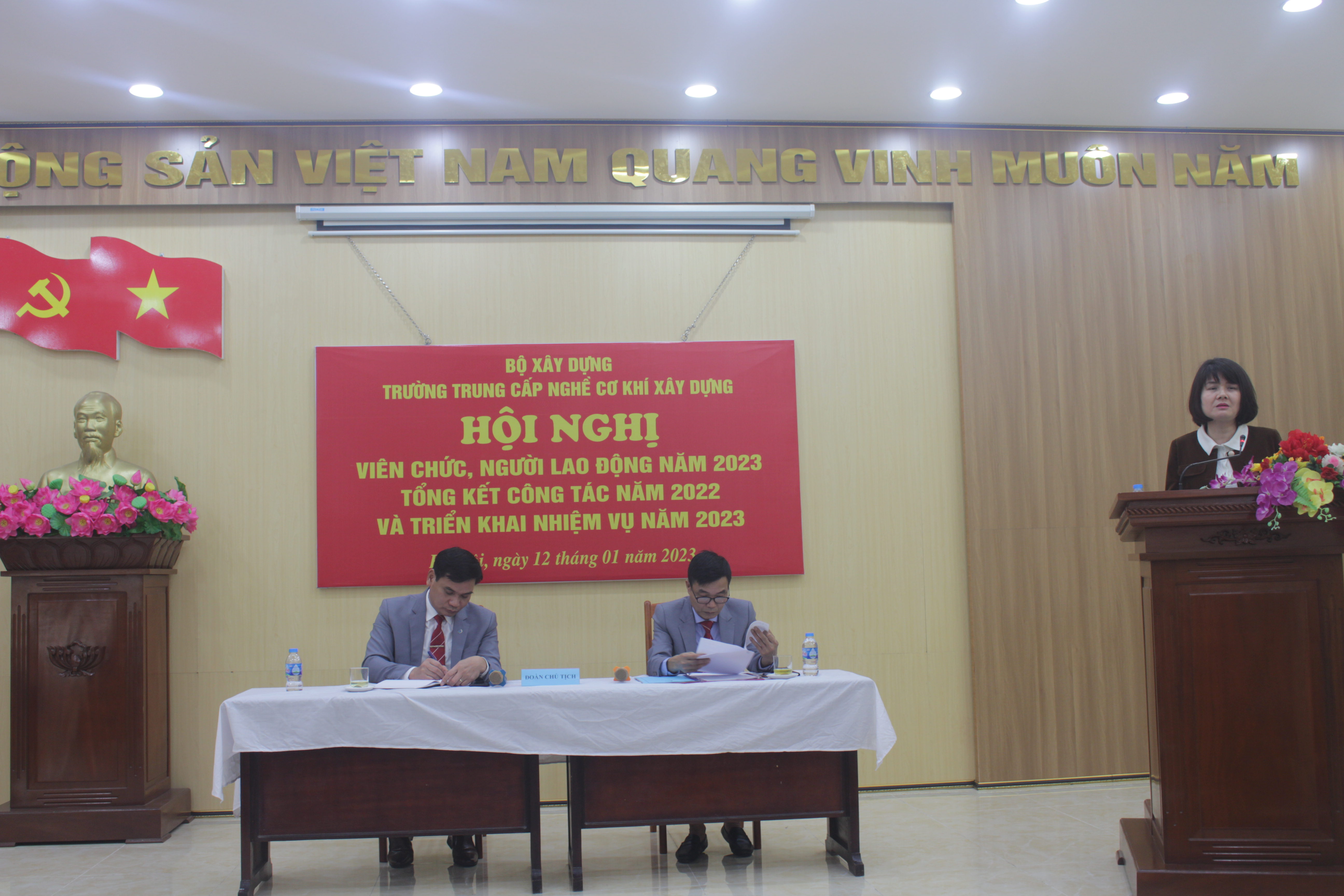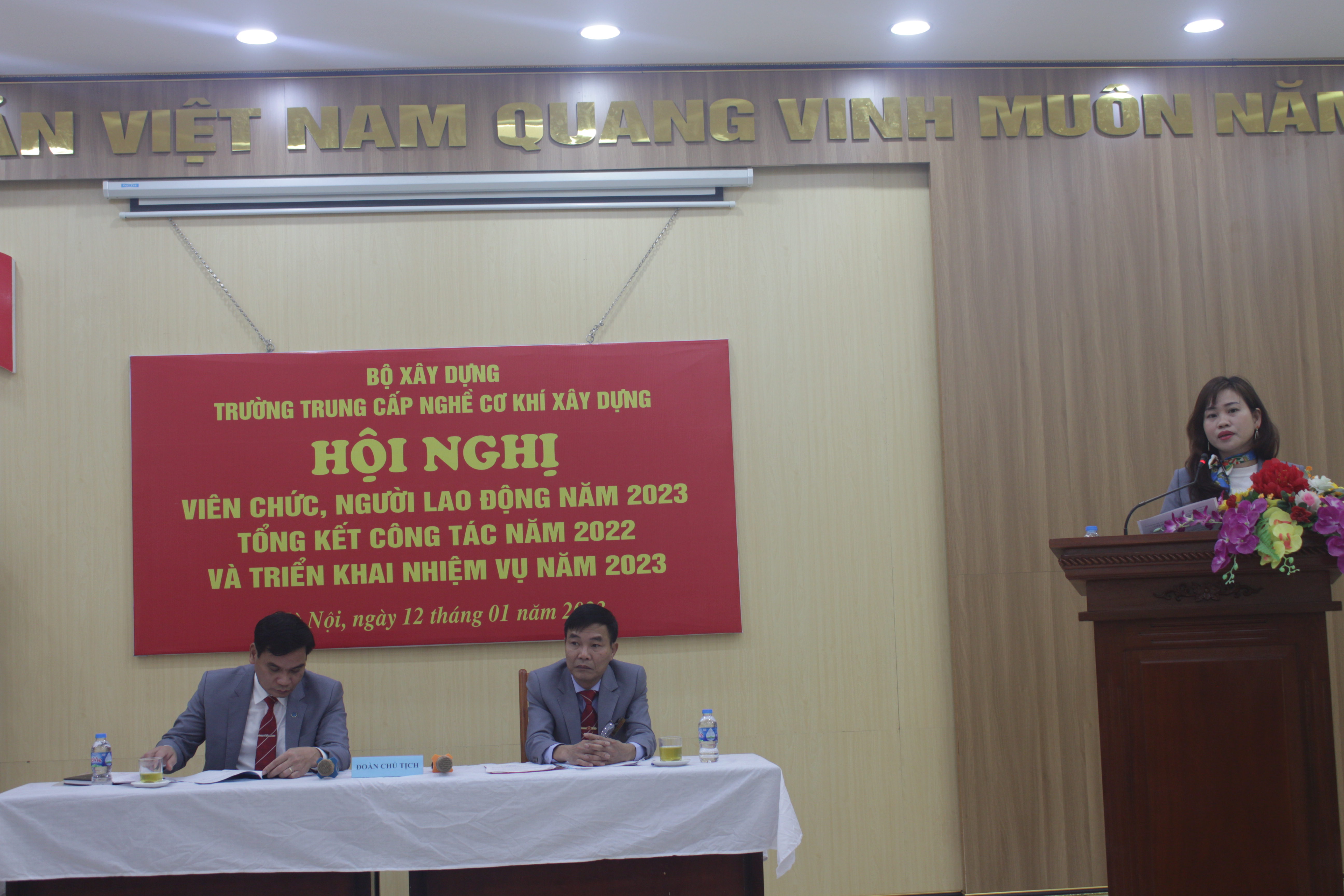 Sáng ngày 12/01/2023, Trường Trung cấp nghề Cơ khí xây dựng long trọng tổ chức Hội nghị viên chức, người lao động năm 2023; Tổng kết công tác năm 2022 và triển khai nhiệm vụ năm 2023.