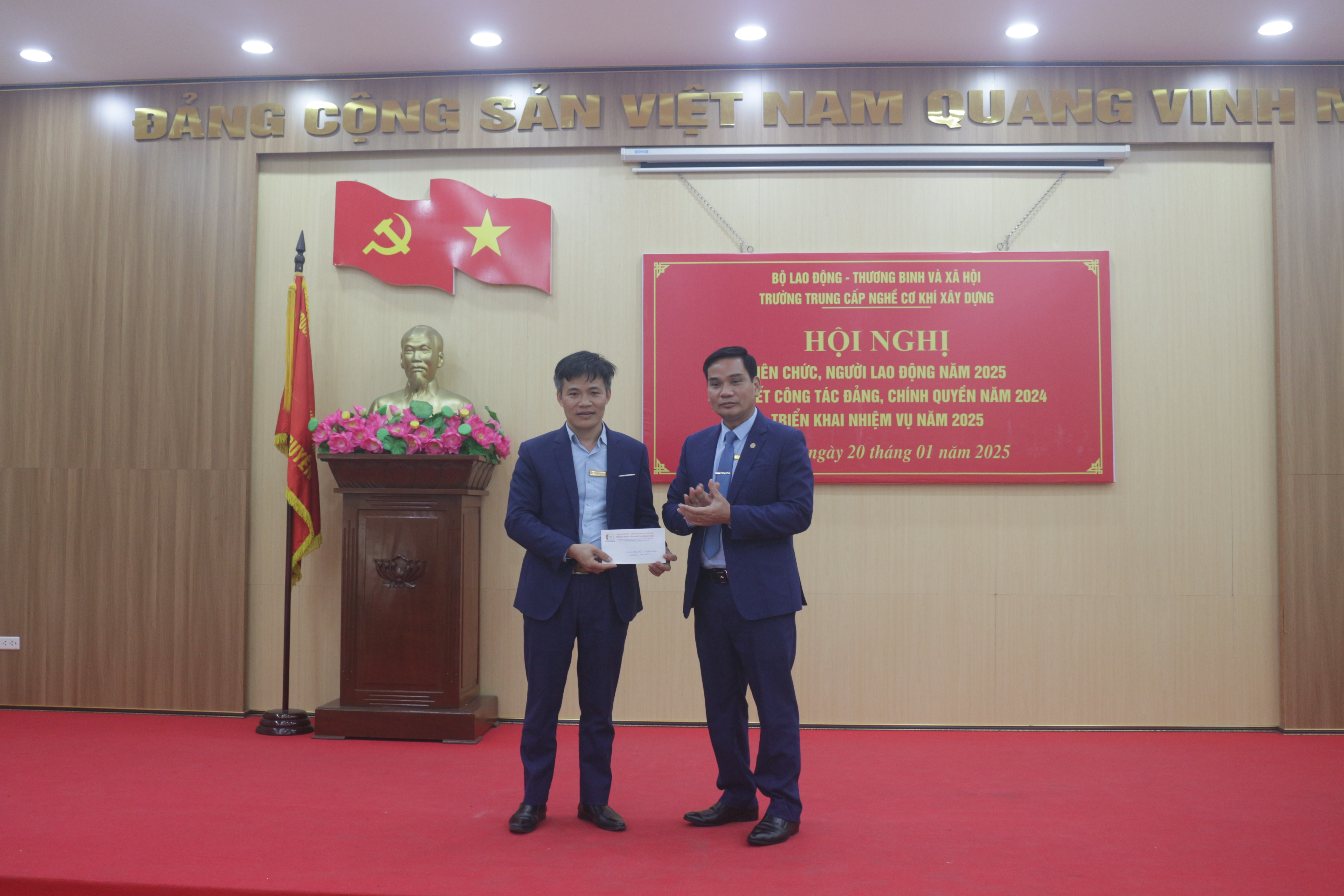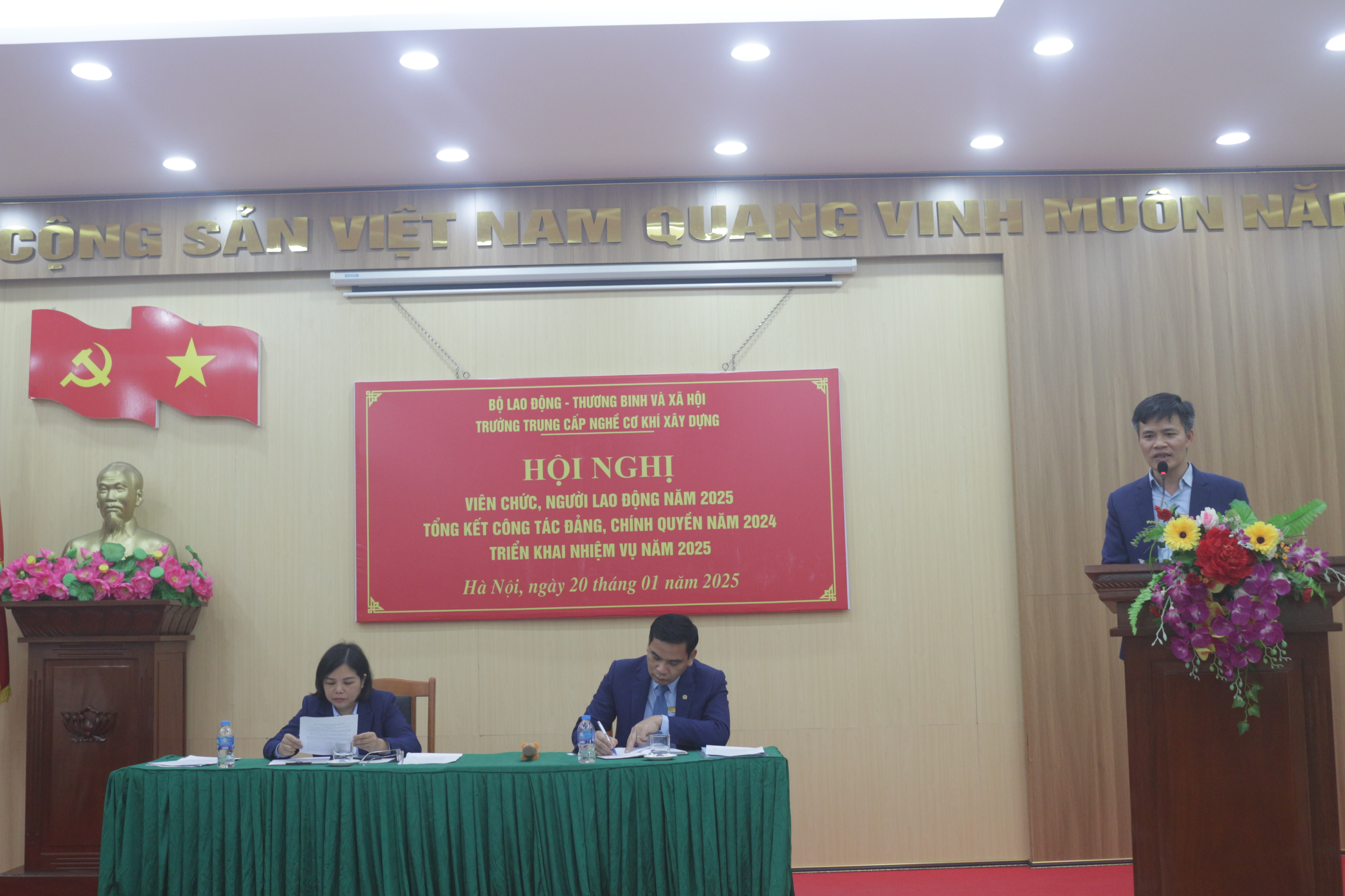 Sáng ngày 20/01/2025, Trường Trung cấp nghề Cơ khí xây dựng long trọng tổ chức Hội nghị viên chức, người lao động năm 2025; Tổng kết công tác Đảng, chính quyền năm 2024 và triển khai nhiệm vụ năm 2025.