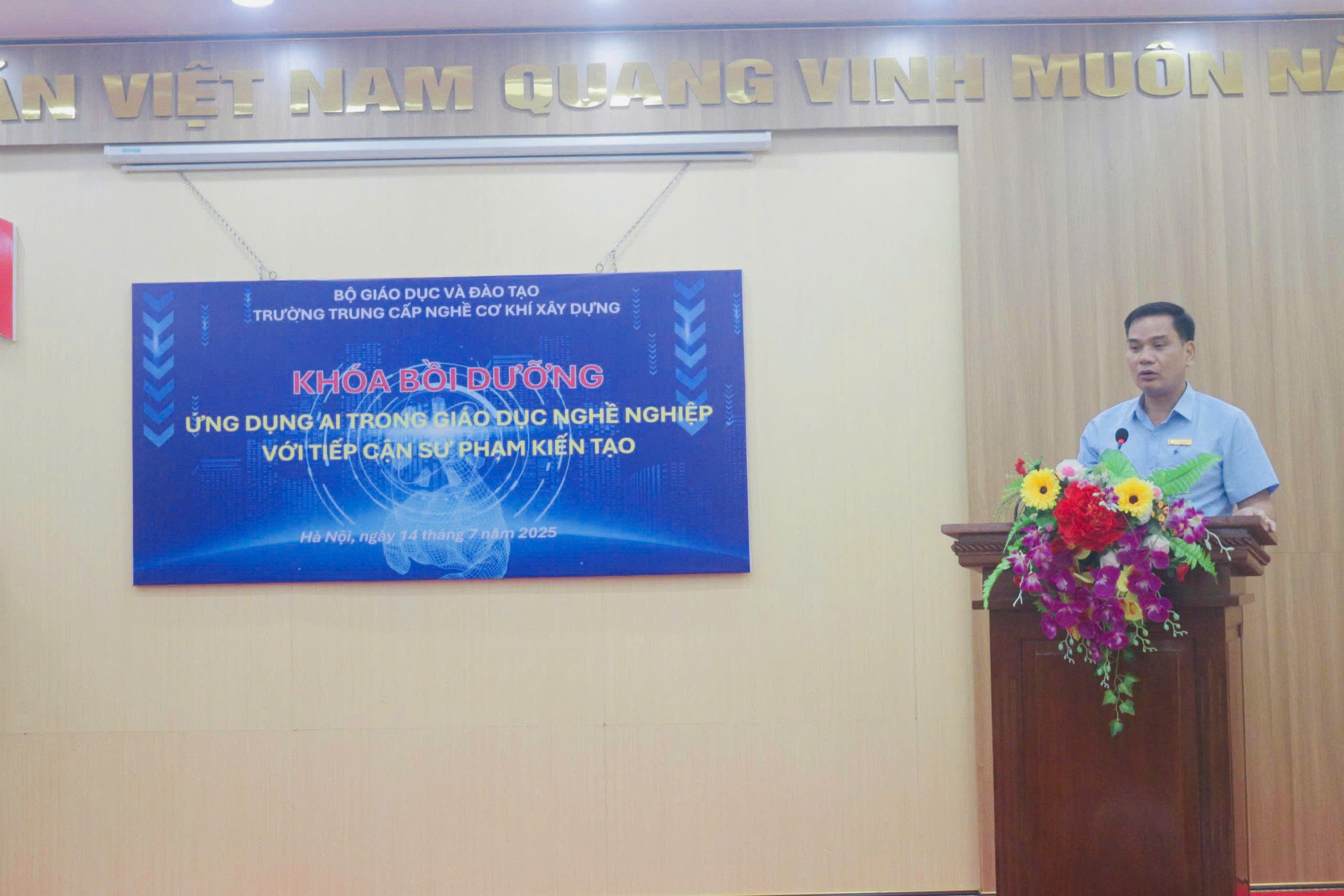Ngày 14/7/2025, Trường Trung cấp nghề Cơ khí xây dựng đã tổ chức khóa bồi dưỡng “Ứng dụng AI trong giáo dục nghề nghiệp với tiếp cận sư phạm kiến tạo” cho toàn thể đội ngũ viên chức quản lý có tham gia giảng dạy, giáo viên của nhà trường.