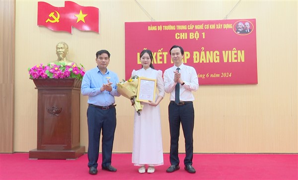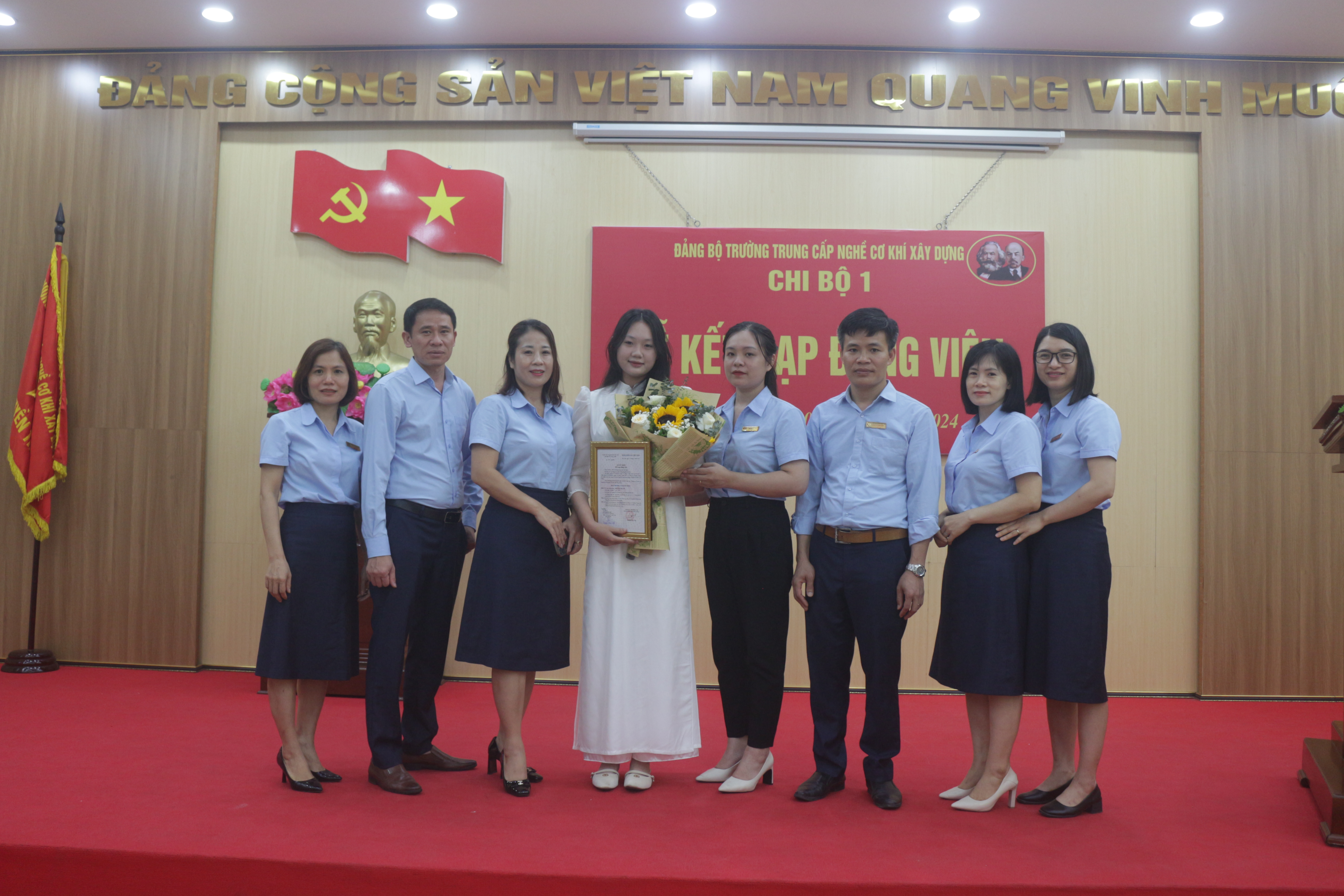 Thực hiện Quyết định số 3129-QĐ/HU ngày 31 tháng 5 năm 2024 của Ban Thường vụ huyện ủy Gia Lâm, sáng ngày 07/6/2024, Chi bộ 1, Đảng bộ trường Trung cấp nghề Cơ khí xây dựng tổ chức Lễ kết nạp đảng cho quần chúng ưu tú Nguyễn Trà My sinh ngày 25/03/2006 là học sinh hệ trung cấp và giáo dục thường xuyên cấp THPT.