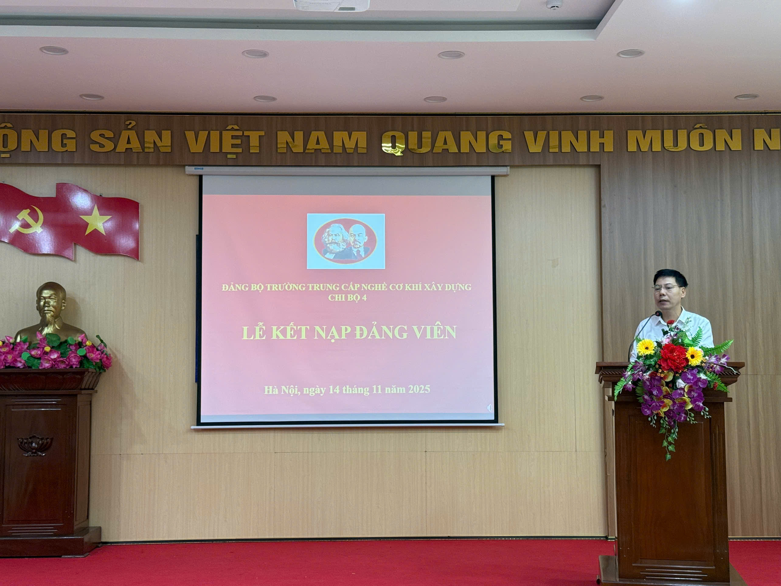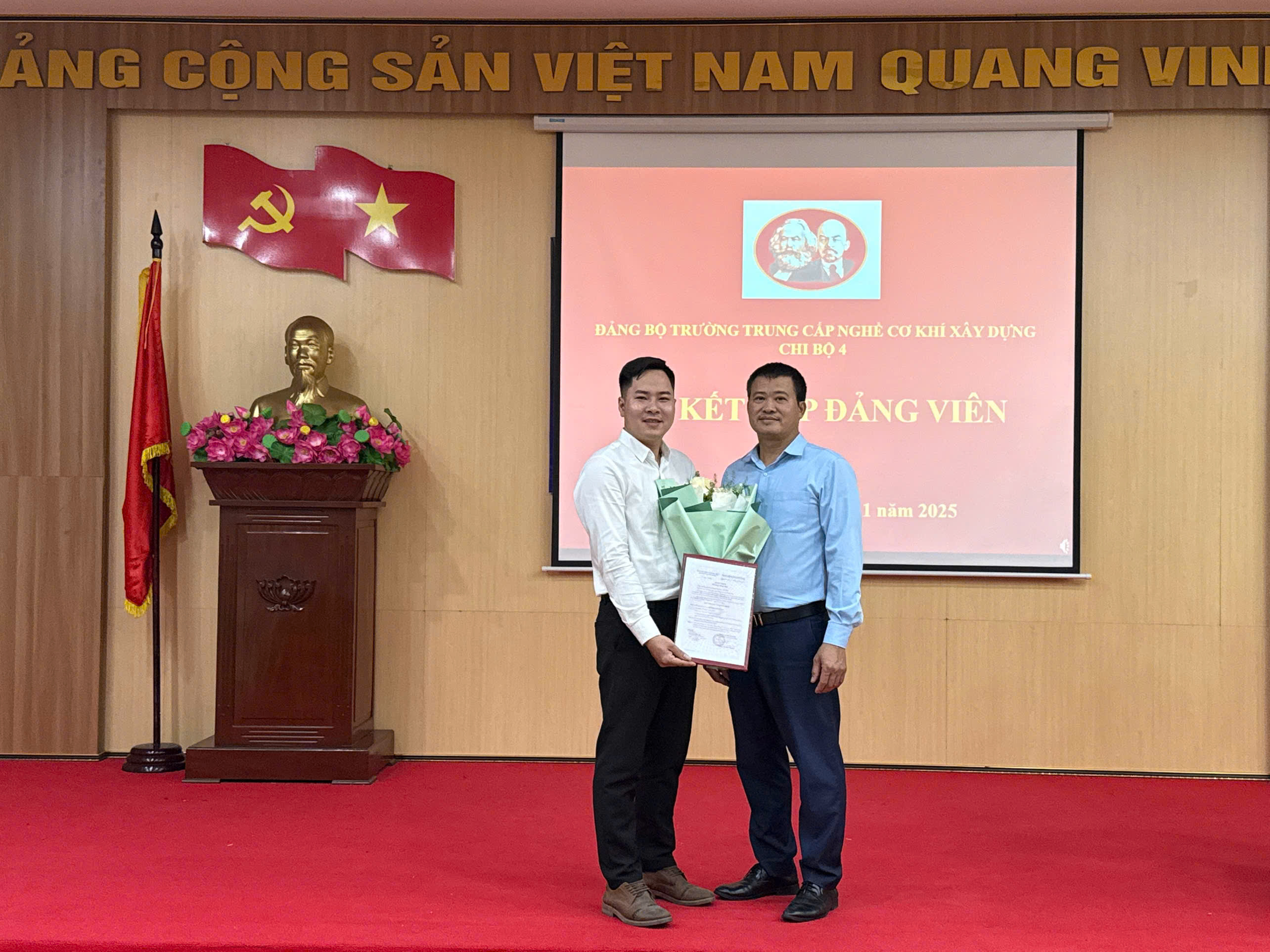 Được sự thống nhất của Đảng Ủy Trường Trung cấp nghề Cơ khí xây dựng, ngày 14/11/2025, Chi bộ 4 thuộc Đảng bộ Trường Trung cấp nghề Cơ khí xây dựng đã long trọng tổ chức Lễ kết nạp đảng viên đối với quần chúng ưu tú Trương Công Lập, giáo viên khoa Công nghệ kỹ thuật.