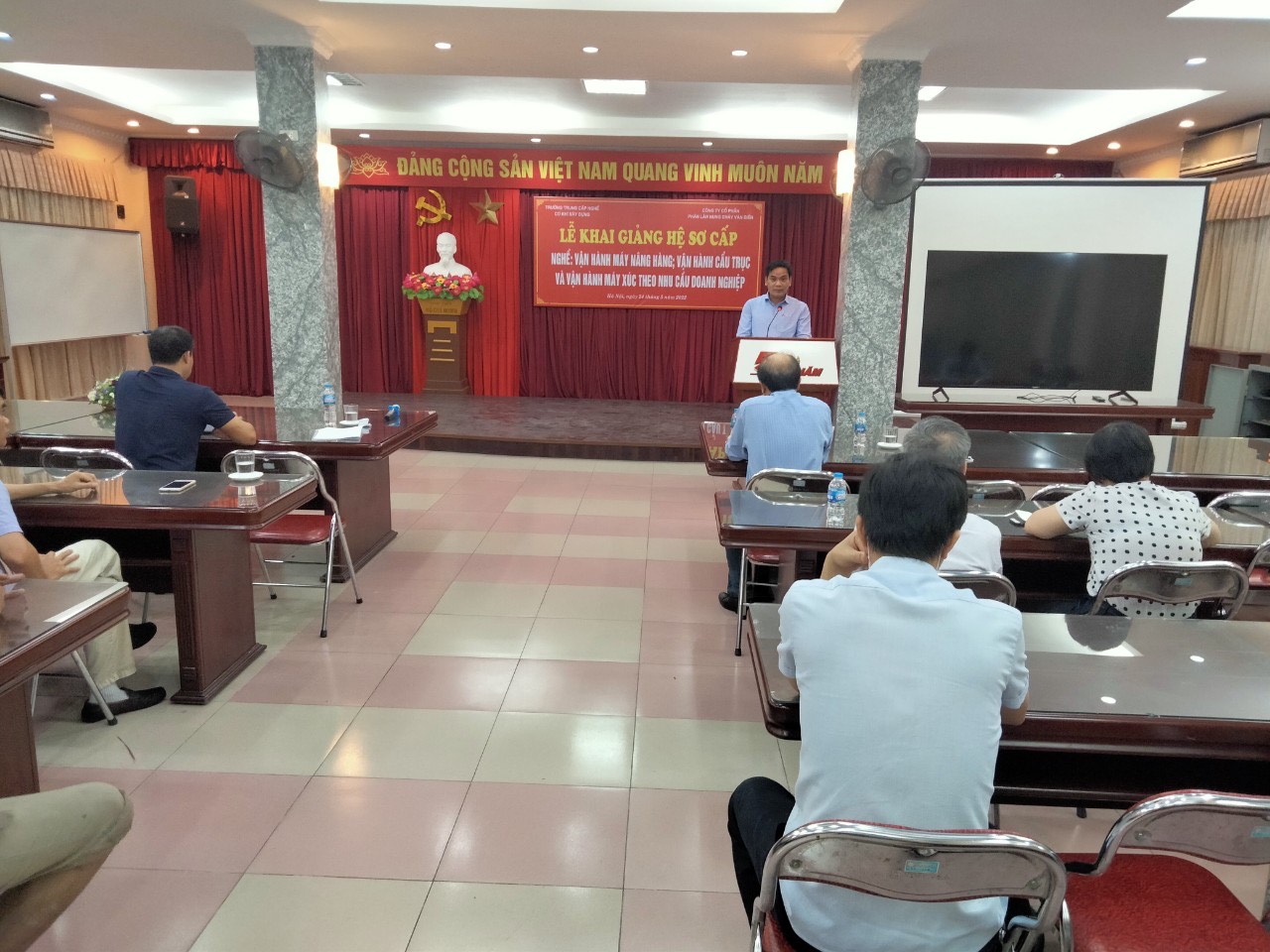 Sáng ngày 14 tháng 5 năm 2022 tại Hội trường Công ty Cổ phần Phân lân nung chảy Văn Điển. Địa chỉ: Đường Phan Trọng Tuệ, xã Tam Hiệp, huyện Thanh Trì, Hà Nội. Trường Trung cấp nghề Cơ khí xây dựng phối hợp với Công ty Cổ phần Phân lân nung chảy Văn Điển tổ chức Lễ khai giảng hệ sơ cấp các nghề: Vận hành máy nâng hàng; Vận hành cầu trục và Vận hành máy xúc cho 39 học viên theo nhu cầu doanh nghiệp.
