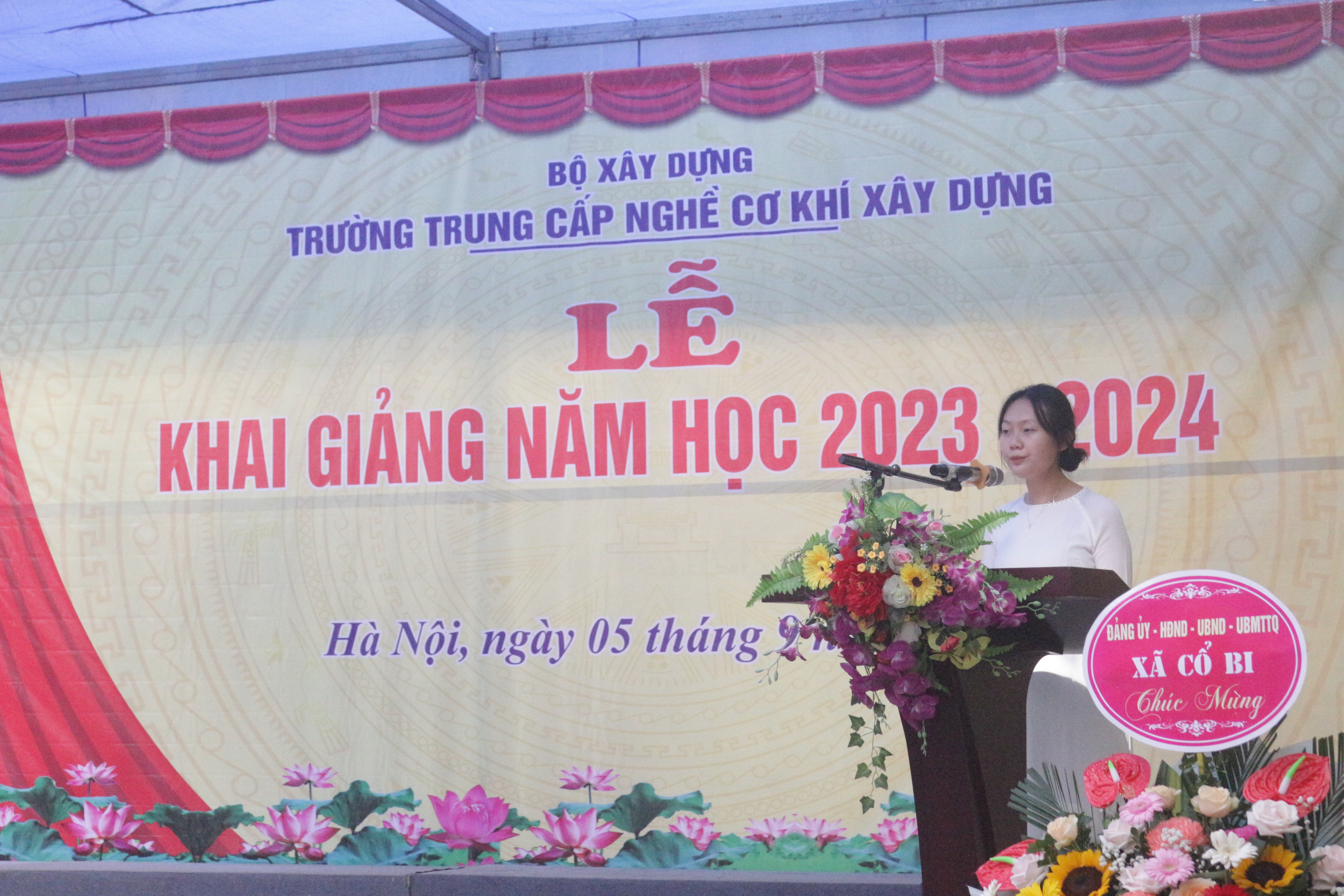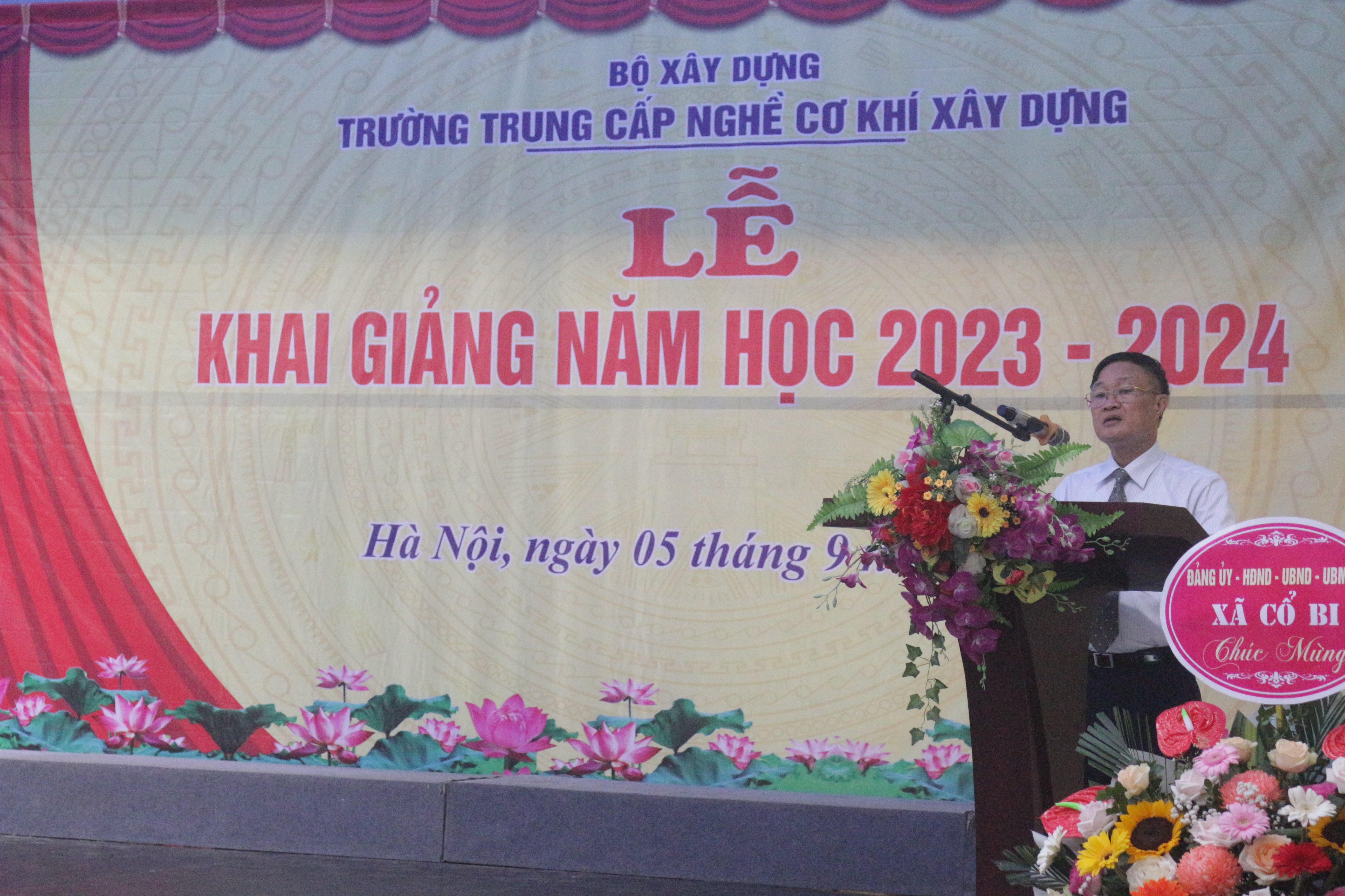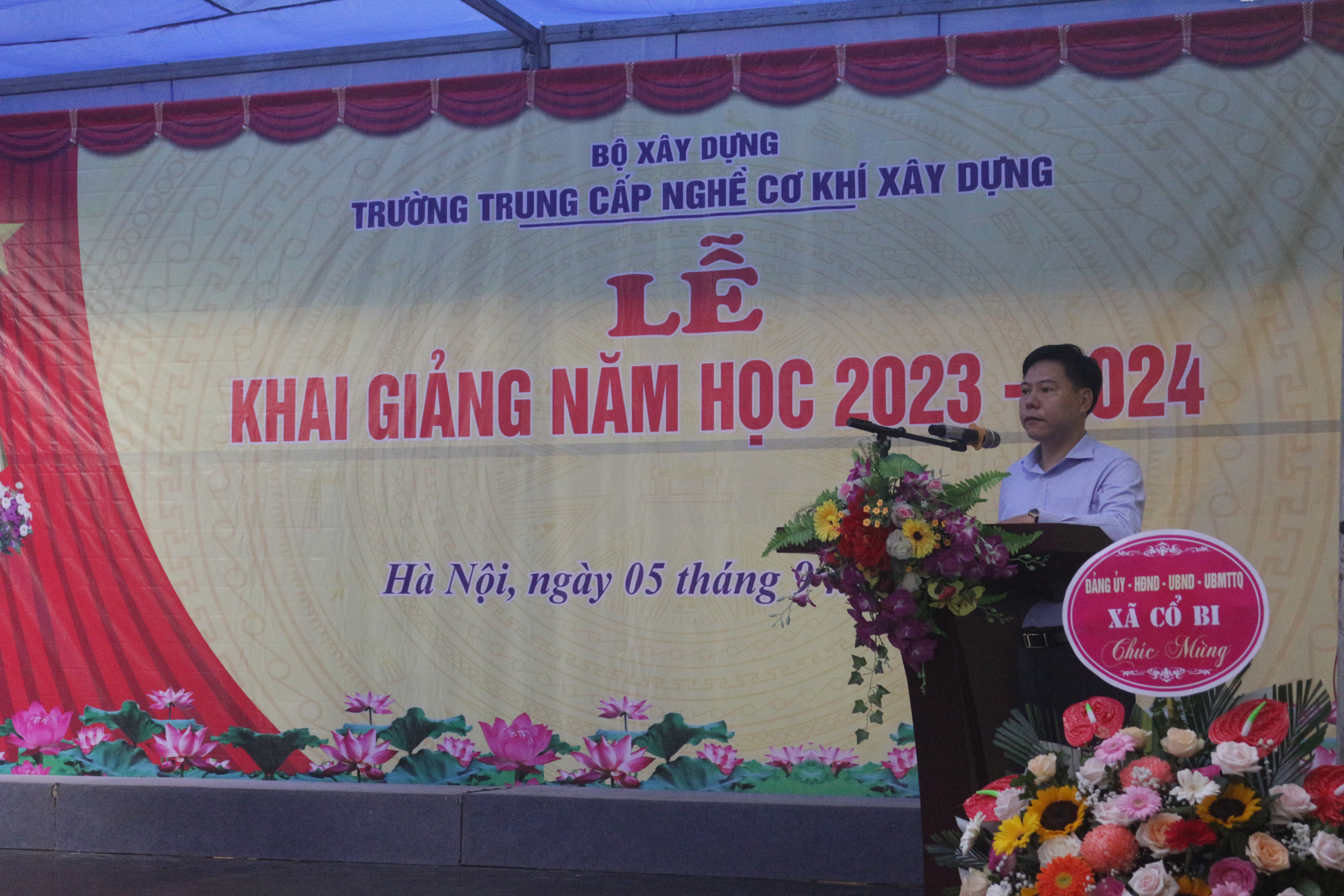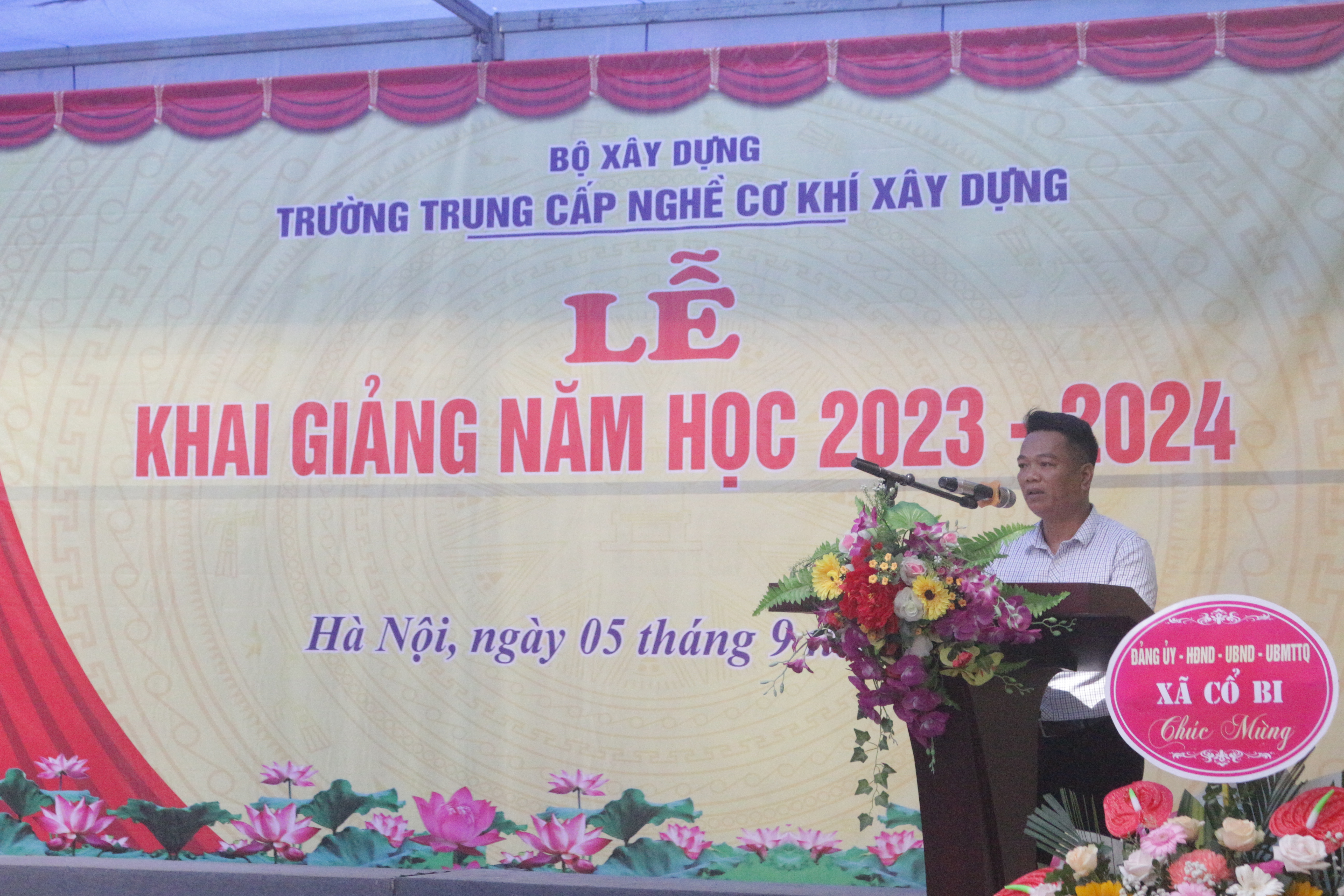 Phát biểu chỉ đạo tại buổi Lễ, đồng chí Vũ Ngọc Chính, Phó Chủ tịch Công đoàn Xây dựng Việt Nam gửi gắm tin tưởng và mong muốn nhà trường không ngừng đổi mới phương pháp dạy học, quyết tâm thi đua dạy tốt, học tốt, rèn luyện tốt, đạt nhiều thành tích cao trong năm học mới 2023 - 2024 đồng thời mong muốn các em học sinh phải tận dụng tối đa thời gian, xác định cho mình động cơ học tập đúng đắn để học tập và rèn luyện vì ngày mai lập nghiệp với ước mơ, hoài bão ngày càng cao đẹp. Các bậc phụ huynh chung tay cùng nhà trường, dành tất cả những gì tốt đẹp nhất để chăm lo cho con em mình, cho sự nghiệp trồng người.