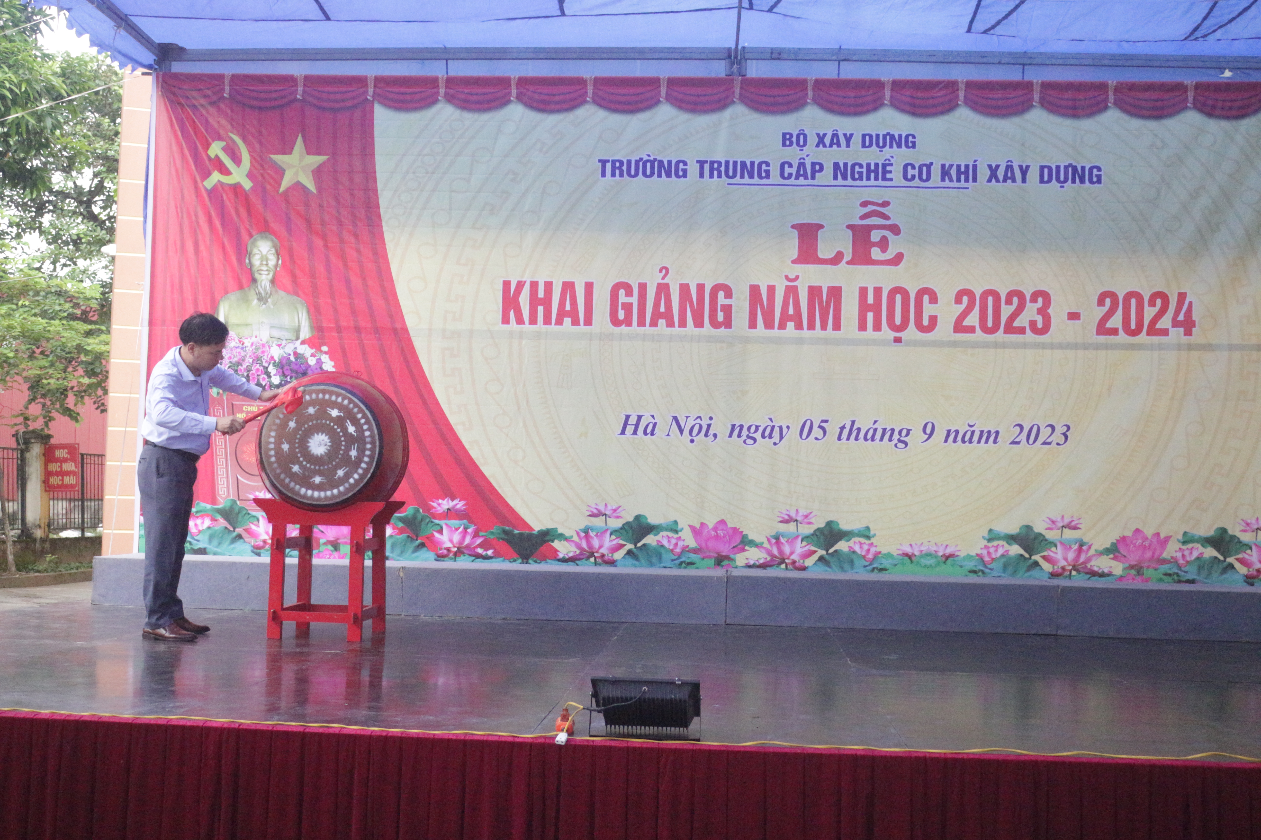 Hòa trong không khí tưng bừng phấn khởi của cả nước đón chào năm học mới, sáng ngày 05/9/2023, Trường Trung cấp nghề Cơ khí xây dựng long trọng tổ chức Lễ Khai giảng năm học 2023 - 2024.