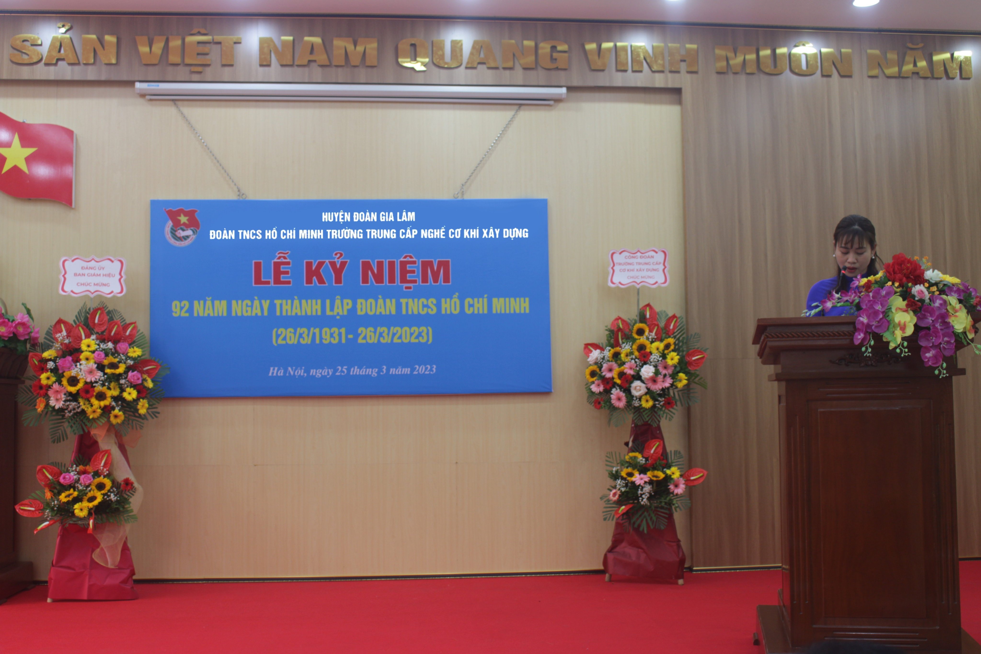 Được sự đồng ý của Đảng ủy, Ban Giám hiệu. Ngày 25/3/2023, Đoàn Thanh niên Cộng sản Hồ Chí Minh Trường Trung cấp nghề Cơ khí xây dựng tổ chức kỷ niệm 92 năm ngày thành lập Đoàn Thanh niên Cộng sản Hồ Chí Minh (26/3/1931 - 26/3/2023).