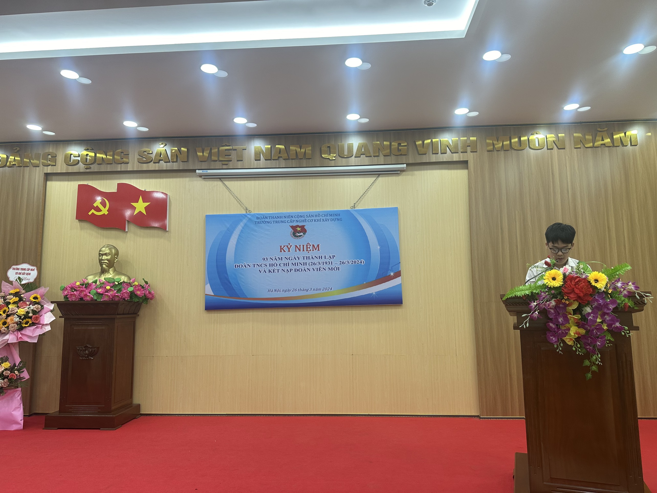 Hòa chung không khí hào hùng của tuổi trẻ cả nước hướng tới kỷ niệm 93 năm ngày thành lập Đoàn thanh niên Cộng sản Hồ Chí Minh (26/3/1931 – 26/3/2024), Được sự đồng ý của Đảng ủy, ban giám hiệu nhà trường, sáng ngày 26 tháng 3 năm 2024, Đoàn thanh niên Trường Trung cấp nghề Cơ khí xây dựng đã tổ chức Lễ kỷ niệm ngày thành lập Đoàn thanh niên Cộng sản Hồ Chí Minh và kết nạp đoàn viên mới.