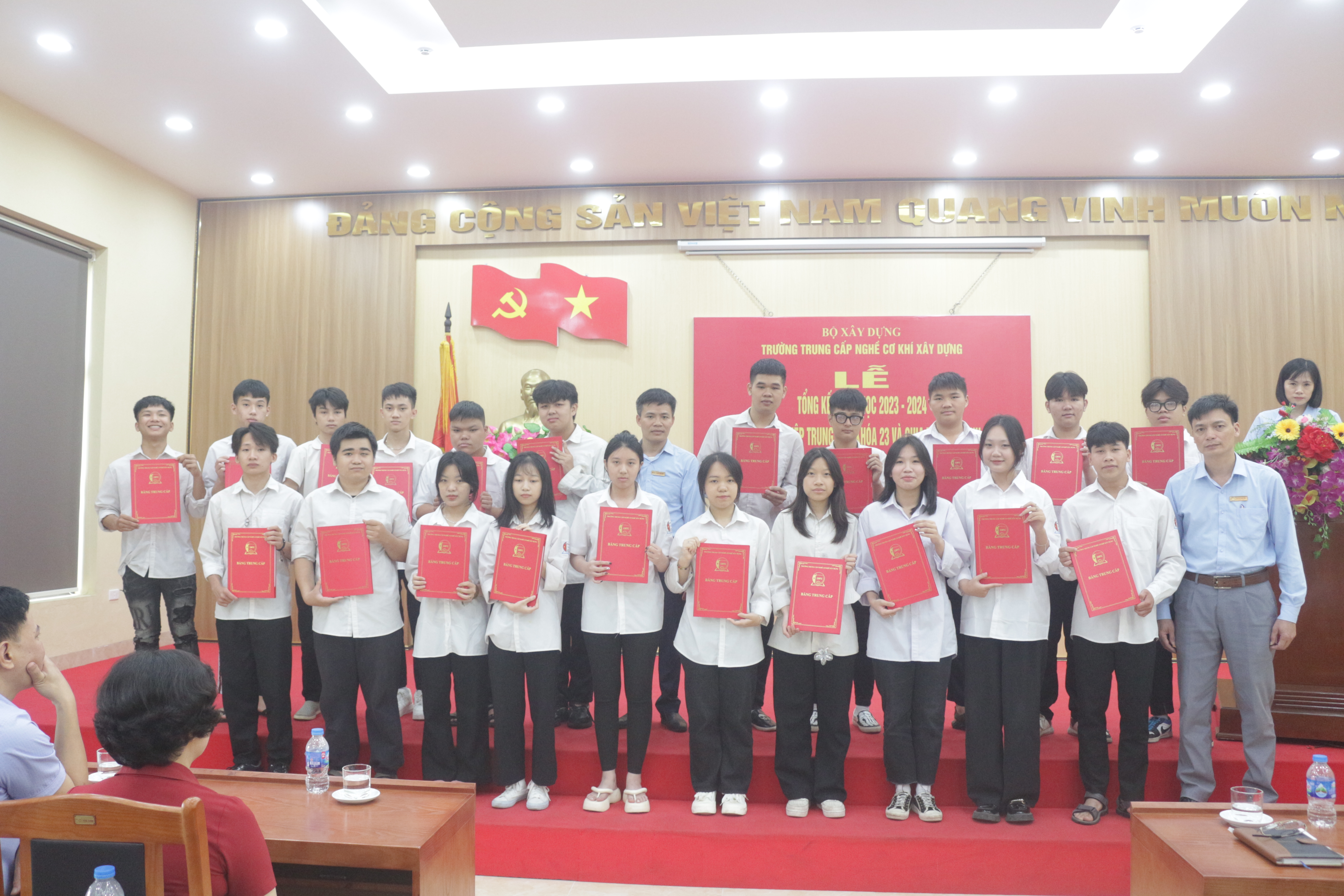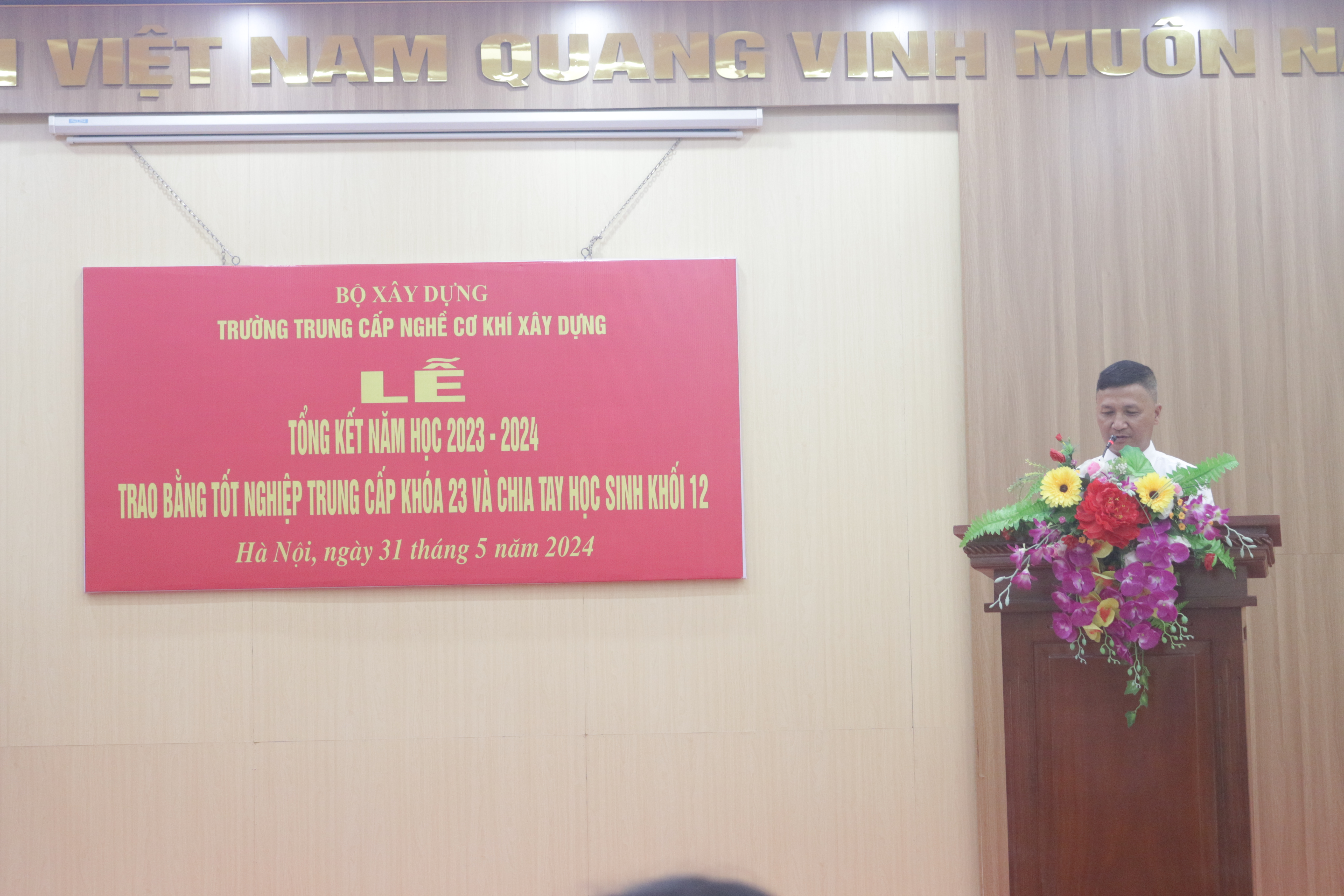 Sáng ngày 31/5/2024 trong không khí trang trọng và đầm ấm. Trường Trung cấp nghề Cơ khí xây dựng đã long trọng tổ chức “Lễ Tổng kết năm học 2023 - 2024, trao bằng tốt nghiệp hệ trung cấp khoá 23 và chia tay học sinh khối 12”. Buổi Lễ nhằm tổng kết, đánh giá những kết quả trong việc thực hiện nhiệm vụ năm học, đồng thời rút ra bài học kinh nghiệm để nhà trường phát huy những ưu điểm, thành tích đã đạt được và từng bước khắc phục những tồn tại, hạn chế để tiếp tục đưa sự nghiệp giáo dục nghề nghiệp của nhà trường ngày càng ổn định và phát triển bền vững.