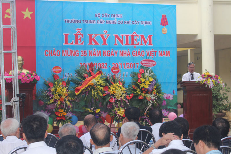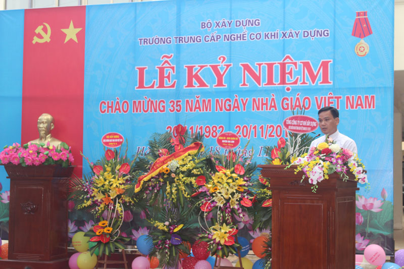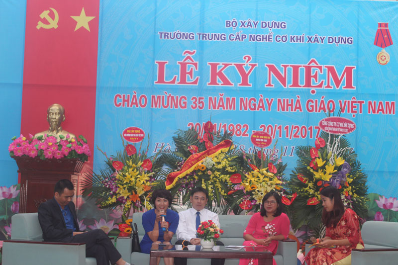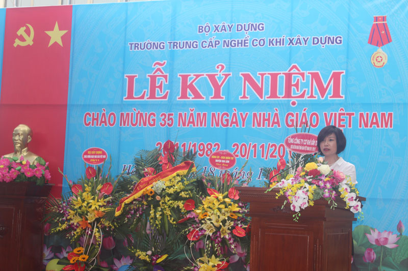 Về dự buổi Lễ, đồng chí Nguyễn Thị Thủy Lệ Ủy viên Ban Cán sự Đảng đảng Bộ Xây Dựng, Ủy viên BCH TLĐLĐVN Chủ tịch Công đoàn Xây dựng Việt Nam đã phát biểu ghi nhận thành tích mà tập thể cán bộ, viên chức và học sinh, sinh viên nhà trường đã đạt được trong năm học vừa qua, đồng thời gửi lời chúc mừng, tình cảm chân thành, sâu sắc tới các thế hệ nhà giáo của nhà trường đã và đang làm công việc “trồng người”. Đồng chí cũng tin tưởng với sự quyết tâm, đoàn kết, nỗ lực của tập thể cán bộ, viên chức và học sinh, sinh viên nhà trường trong năm học mới 2017-2018 sẽ hoàn thành xuất sắc nhiệm vụ được giao.